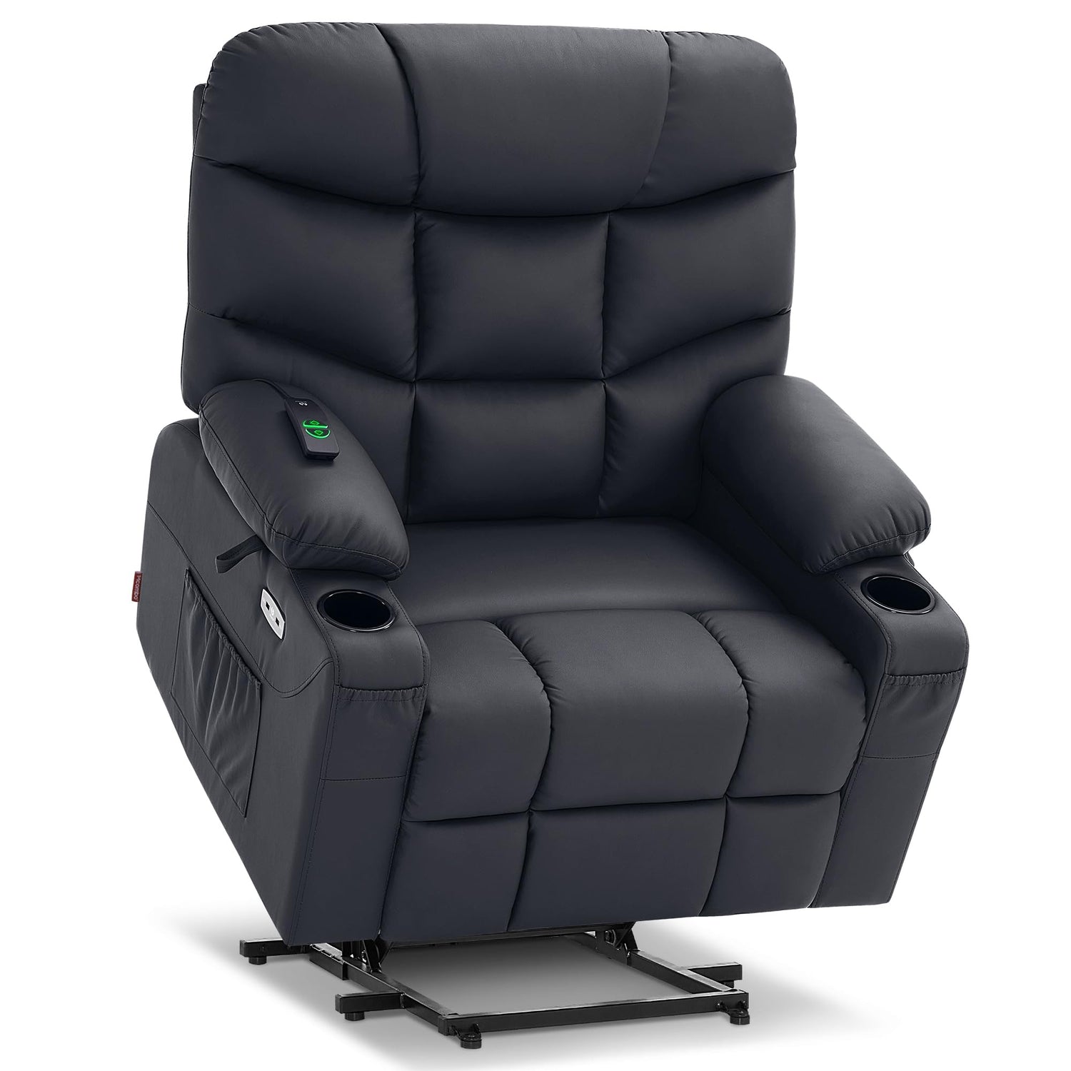 MCombo Oversized Power Lift Recliner Chair with Extended Footrest for Elderly People, Faux Leather R7289 (Black, Oversize)