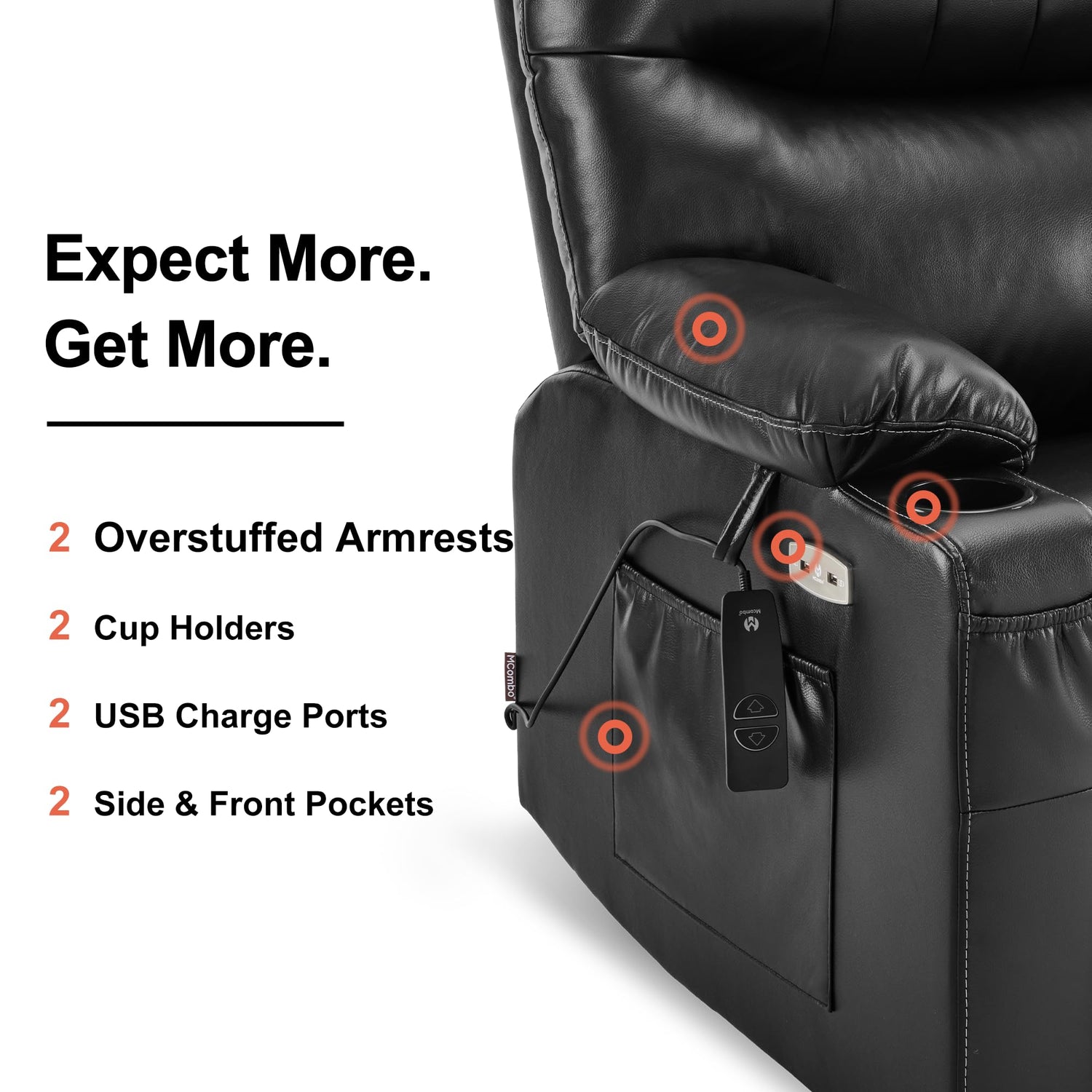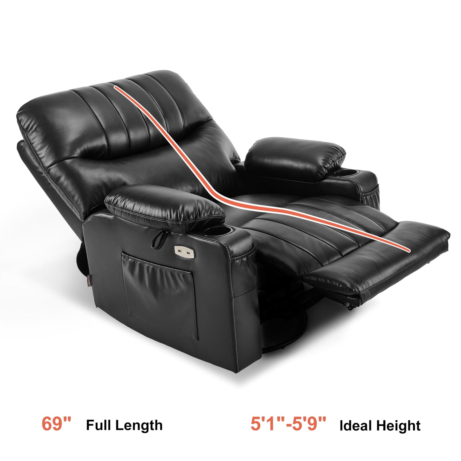 MCombo Oversized Swivel Glider Rocker Power Recliner Chair for Living Room with Heat and Vibration Massage, USB Ports, Cup Holders and Pockets, Faux Leather 7785 (Black)