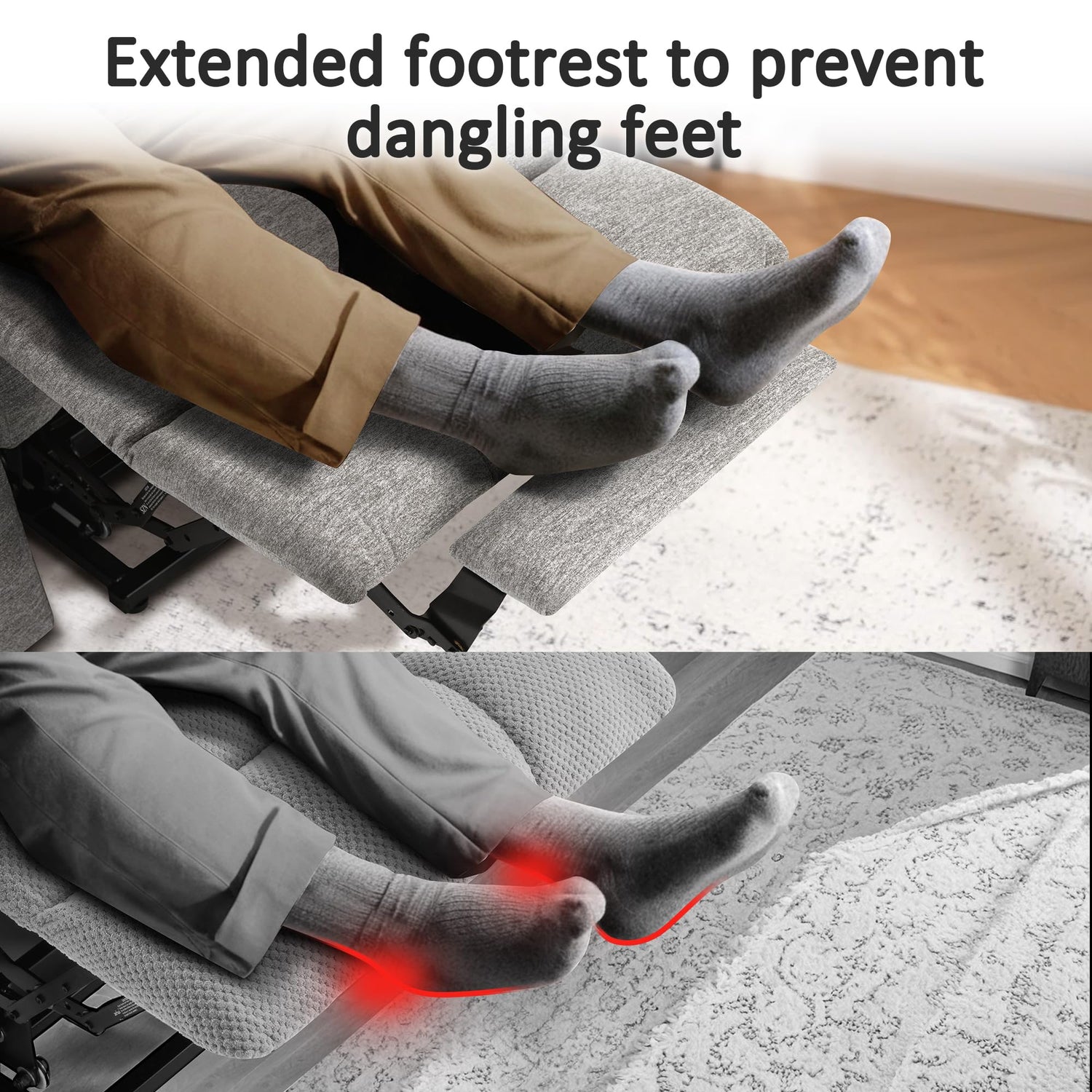 - Power Lift Assistance: Counter-balanced lift mechanism to assist the senior stand up easily, smoothly adjust to lift or reclining position you prefer by pressing buttons (Max reclining angle: 140°)