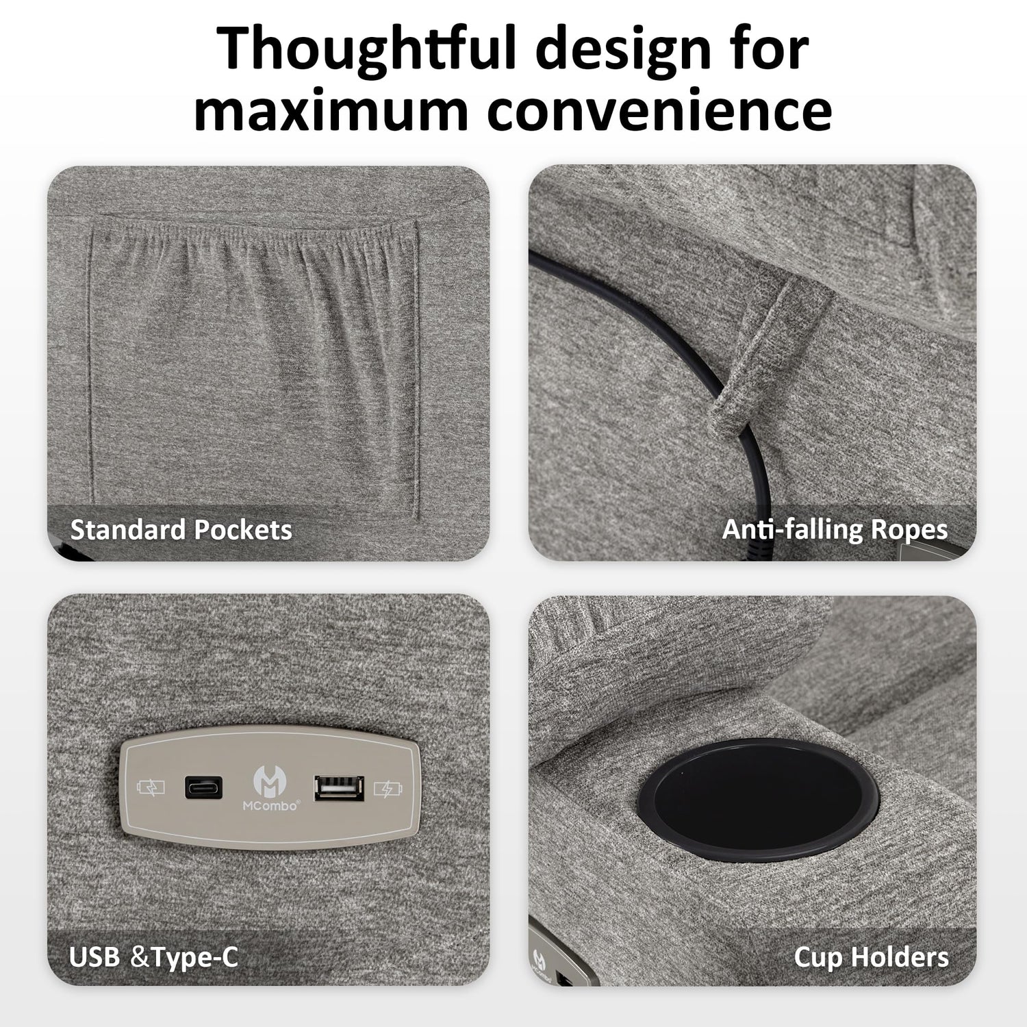 MCombo Power Lift Recliner Chair with Extended Footrest for Elderly People, Fabric 7287 (Light Grey, Medium)
