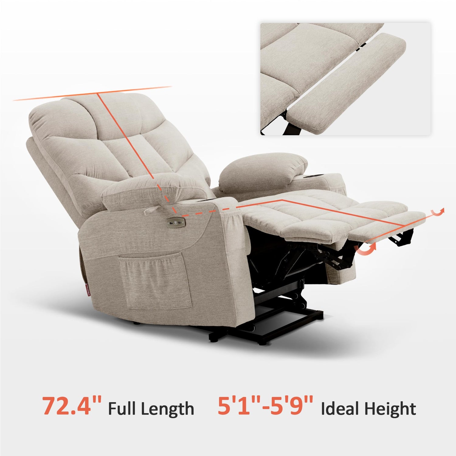 MCombo Power Lift Recliner Chair with Extended Footrest for Elderly People, Fabric 7287 (Oatmeal, Medium-Regular)