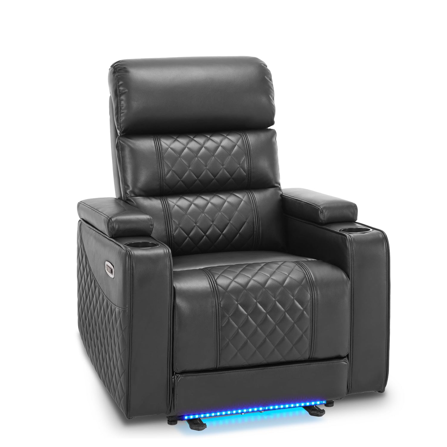 MCombo Power Recliner Chair with Adjustable Headrest, Home Theater Seating with USB & Type-C Port, Armrest Storage & LED Light HTS432SET (Dark Grey, Single Recliner)