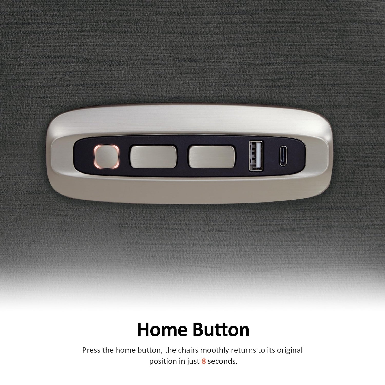 - User-Friendly Controller. Press the home button, and the chair smoothly returns to its original position in just 8 seconds. The dual USB & USB-C charge ports on armrest mean that any phone or pad is applicable