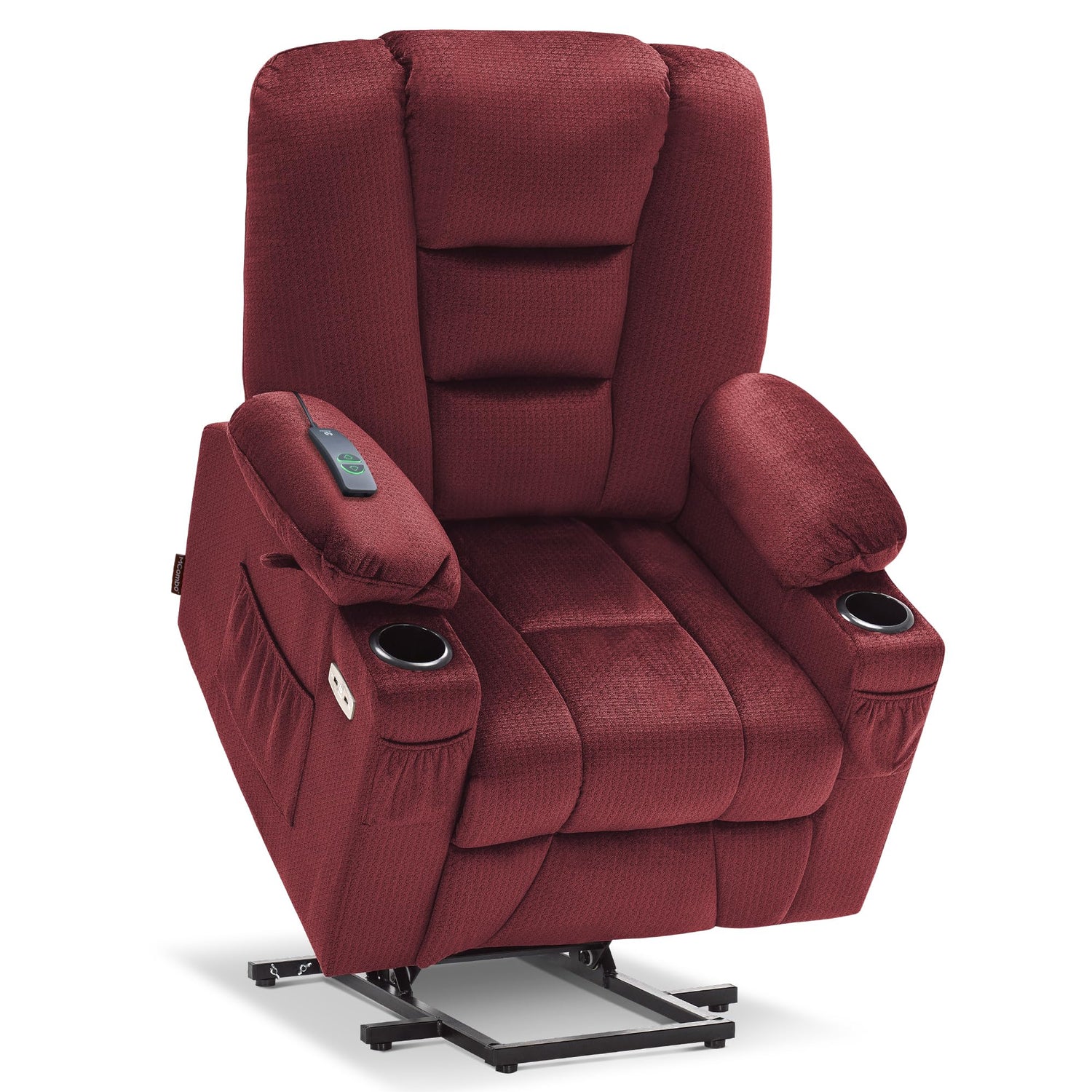 MCombo Small Power Lift Recliner Chair with Massage and Heat for Petite People, Cup Holders, USB Ports, Side Pockets, Fabric 7569 (Small-Regular, Burgundy)