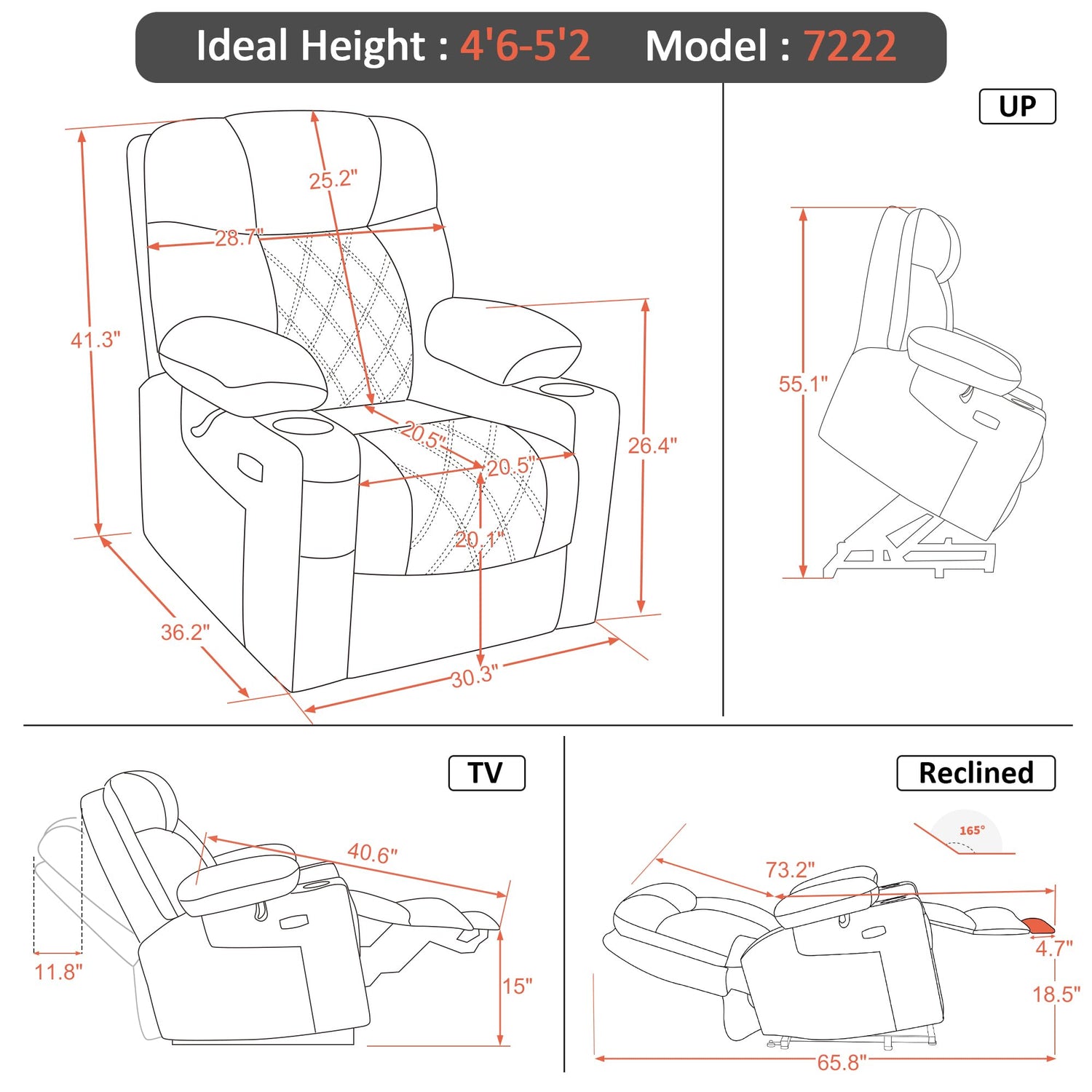 - Small Sized Power Lift Recliner: By analyzing the physical traits of small people, we shortened the length of the backrest and the dimensions of the seat. This chair will be the perfectly-sized as your shadow, specifically tailored for Petite People. (Recommended Height: 4'6"-5'2")