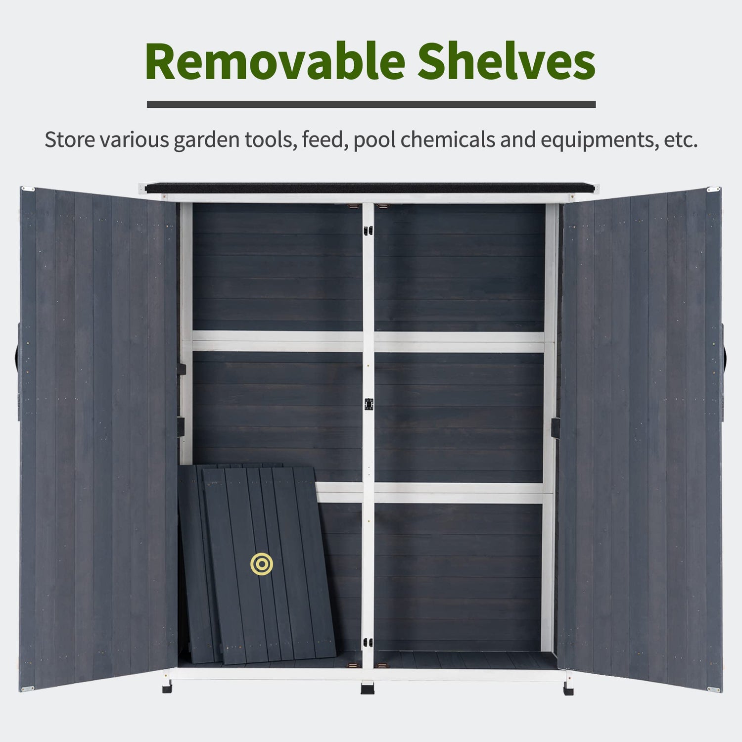 MCombo Storage Shed Backyard Utility Tools Organizer Outdoor Wooden Garden Racks Shelves with Lockers 2 Doors Home Furniture 6056-1400(Grey)