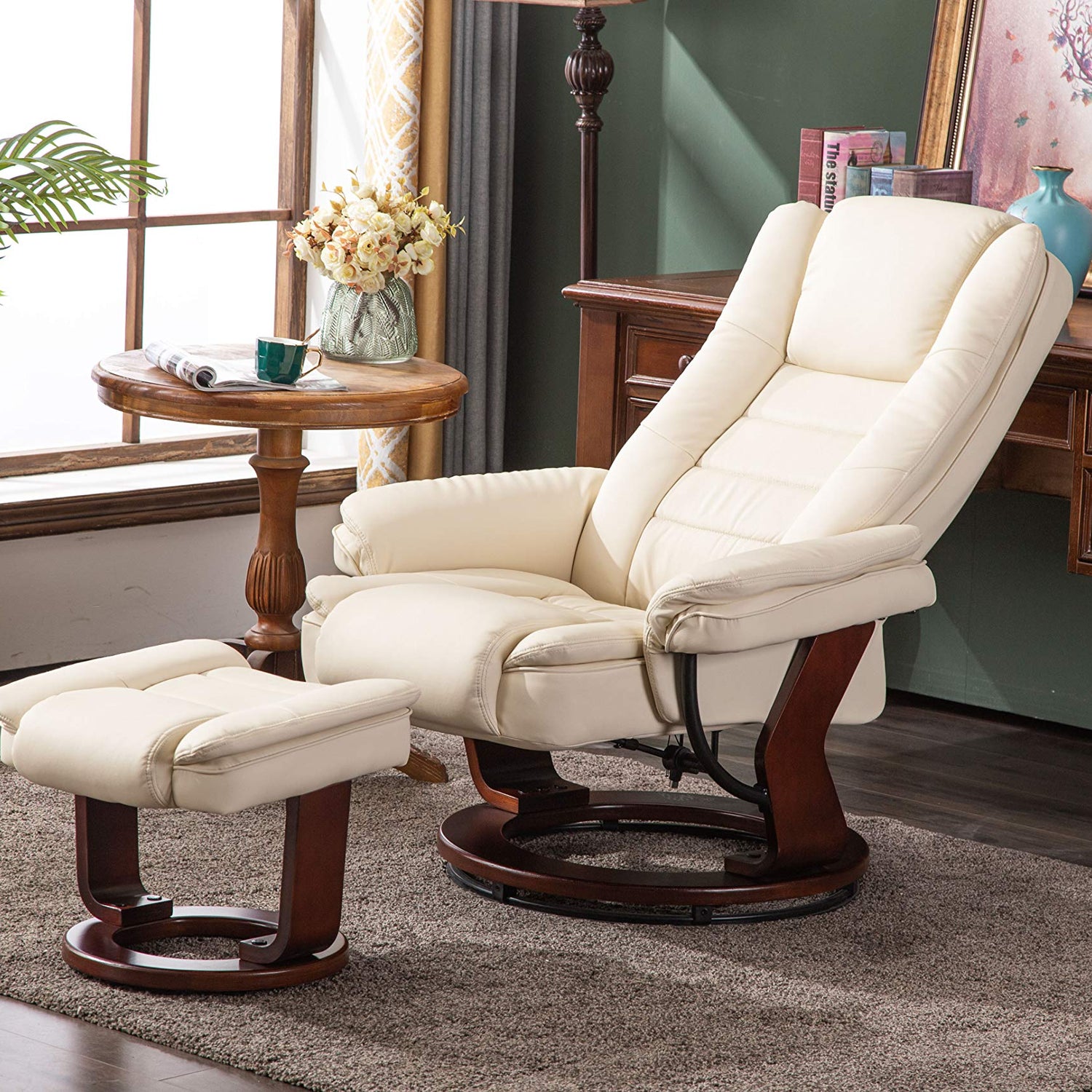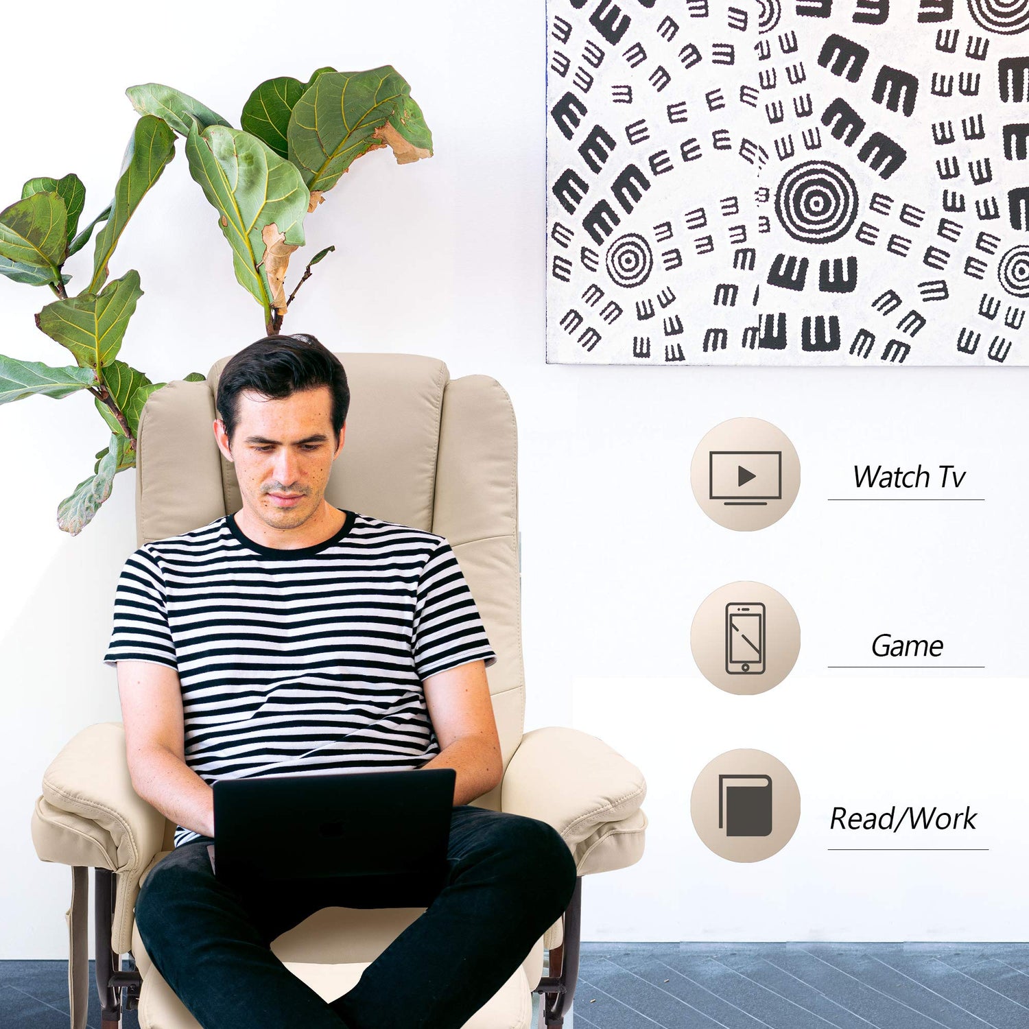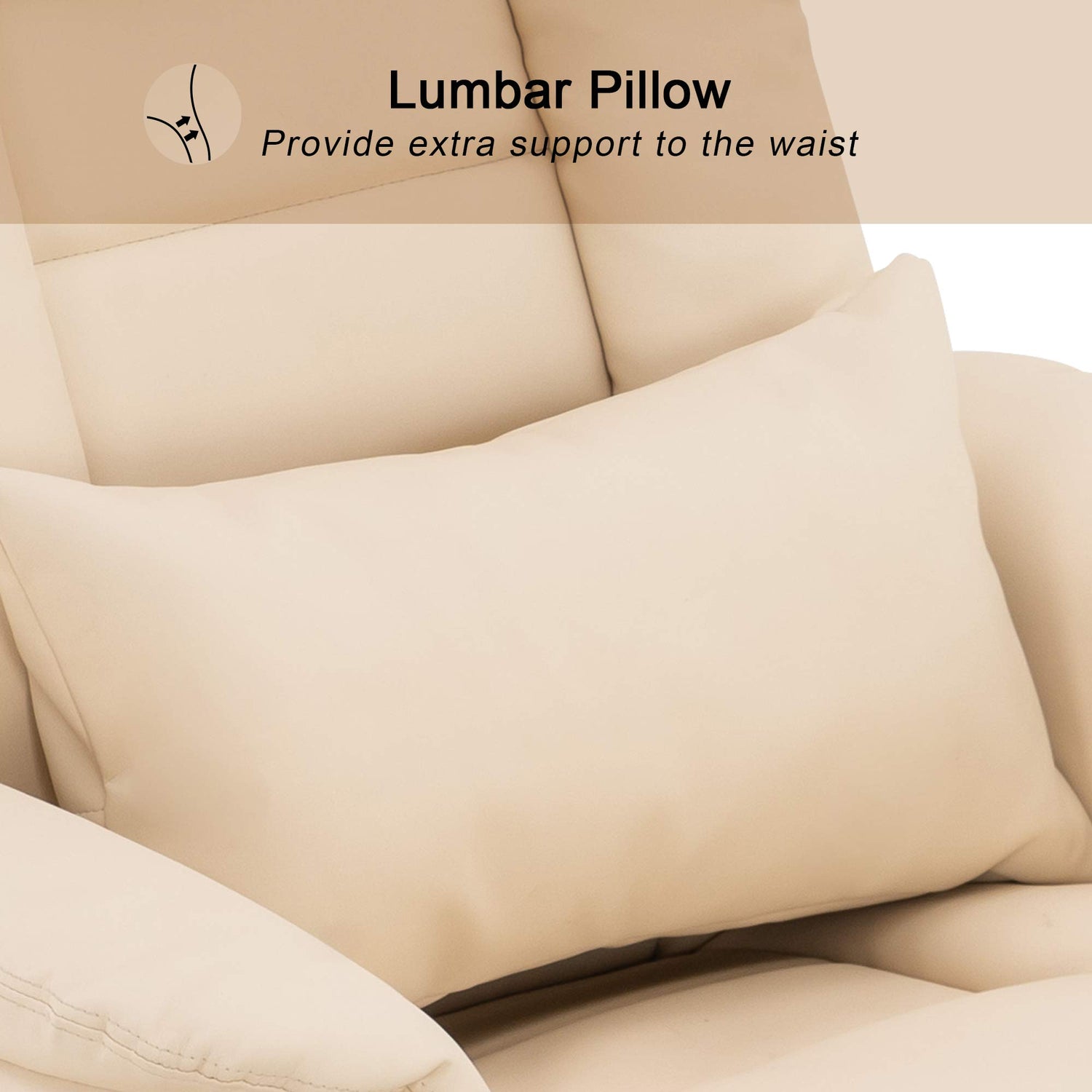 MCombo Swivel Recliner with Ottoman Chair, TV Chair Sets with Vibration Massage, for Small Space Living Room Bedroom 9096 9099 (Faux Leather, Cream White)