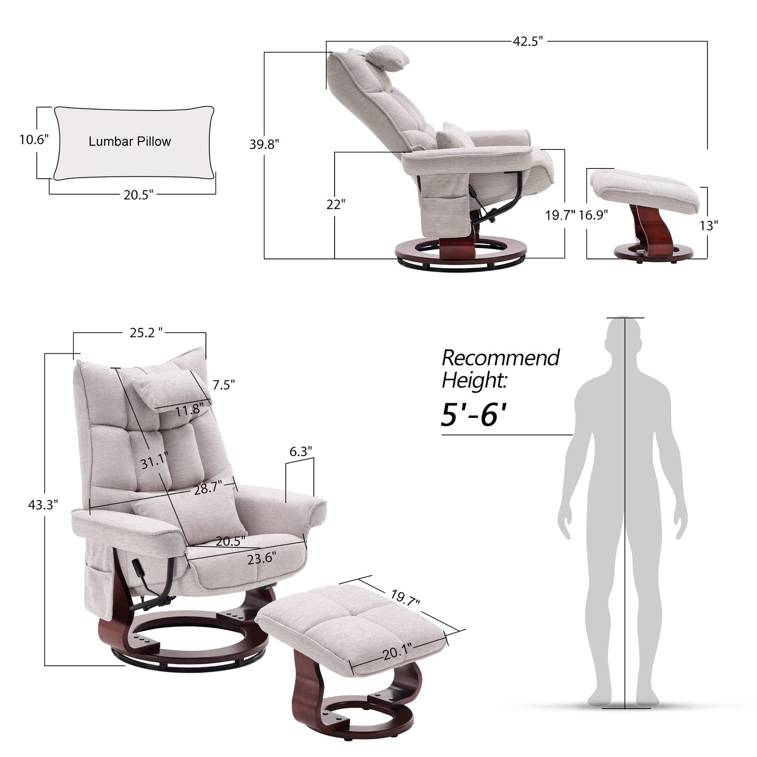 MCombo Swivel Recliner with Ottoman, TV Chair Sets with Vibration Massage, Ideal for Small Space, Living Room & Bedroom 4188 (Beige)