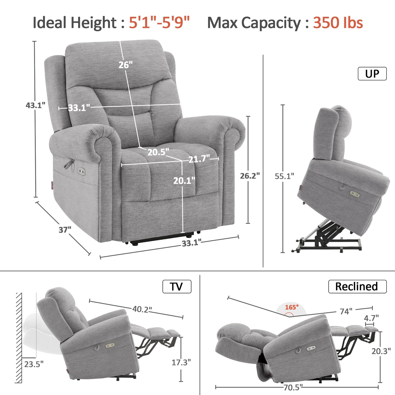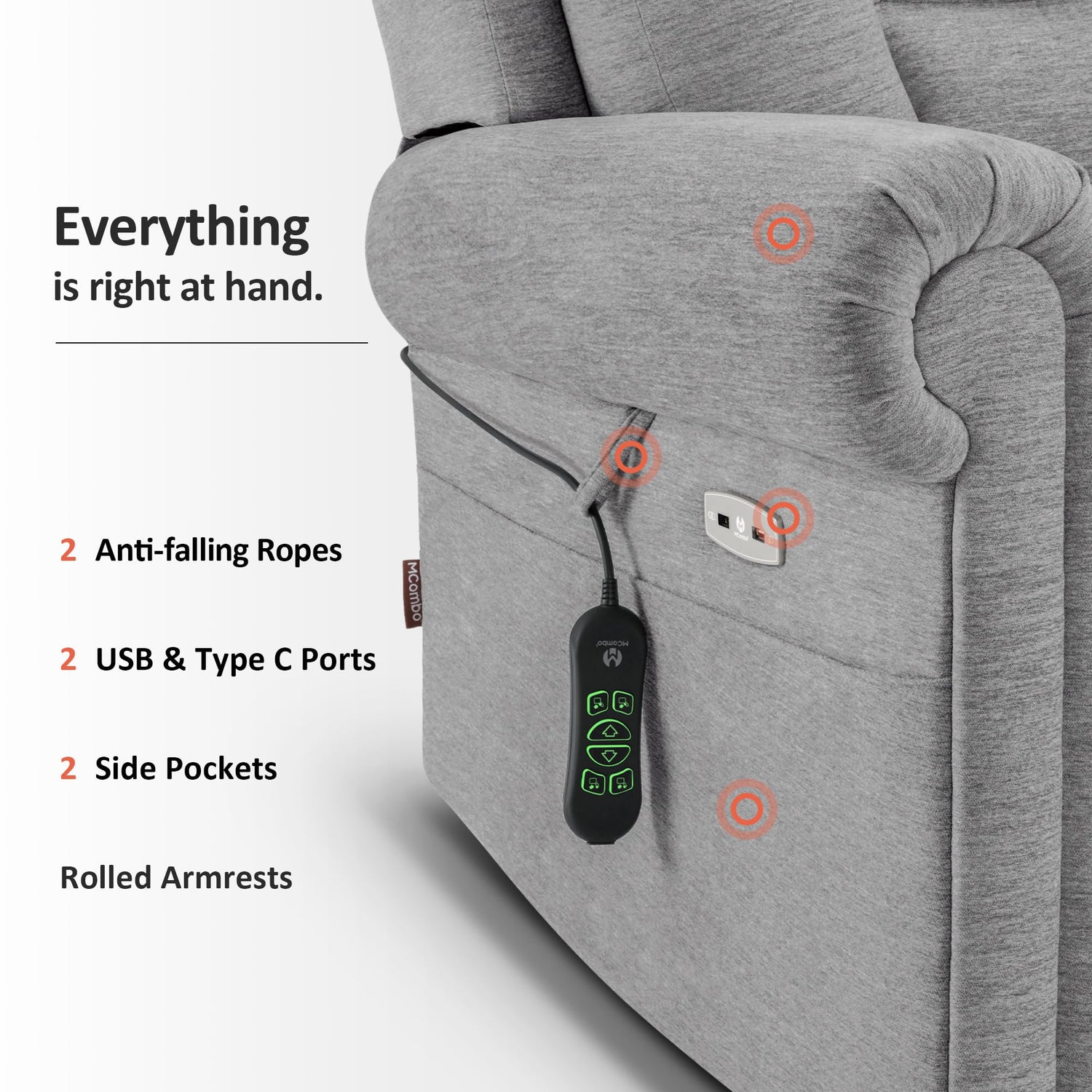 MCombo Triple Motor Power Lift Recliner Chair with Massage and Lumbar and seat Heating, Rolled Arms, Adjustable Headrest for Elderly People, Fabric 7888 (Grey, Medium)