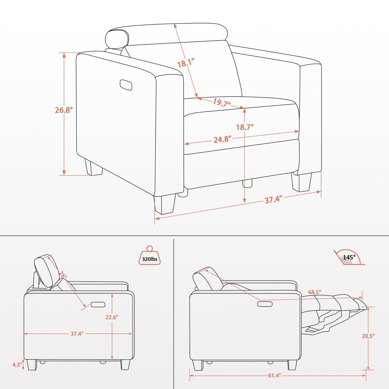- Adjustable Power Headrest. Adjust the headrest to achieve optimal neck and head support, ensuring a comfortable experience for watching TV, reading, or any desired relaxing position (0~90°)