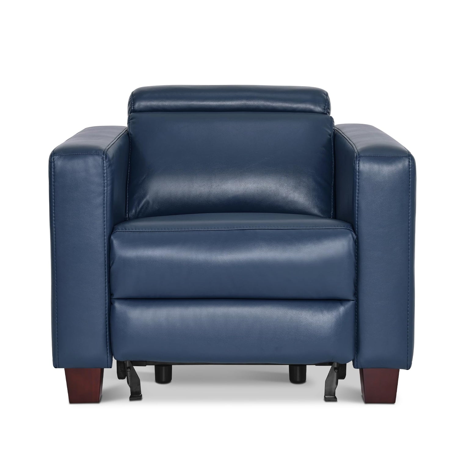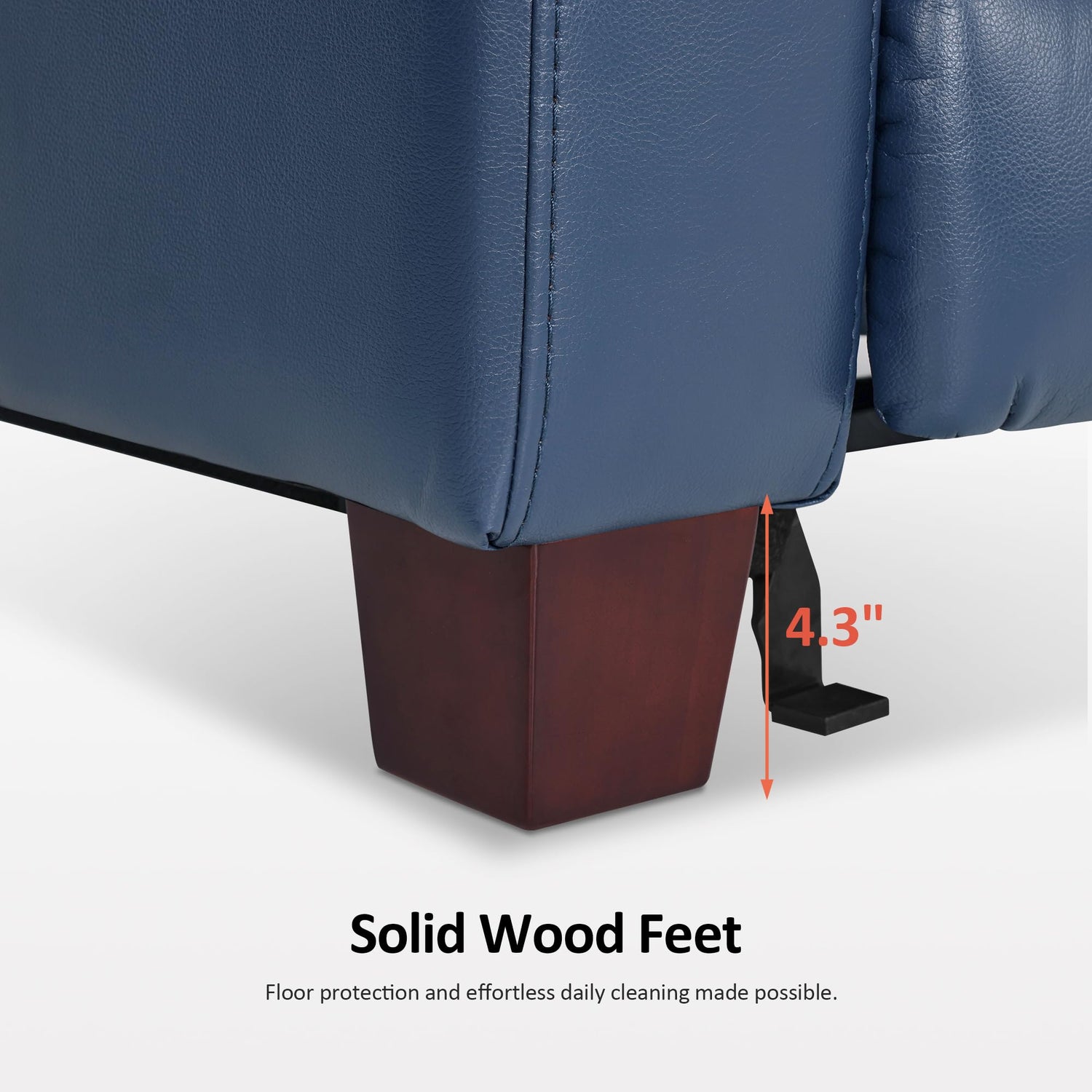 MCombo Zero Wall Recliner Chair, Wall Hugger Power Loveseat Recliner with Adjustable Headrest, High Wood Leg, USB & Type C Dual Charge Ports, for Living Room, Small Spaces, HL128 (Faux Leather, Blue)