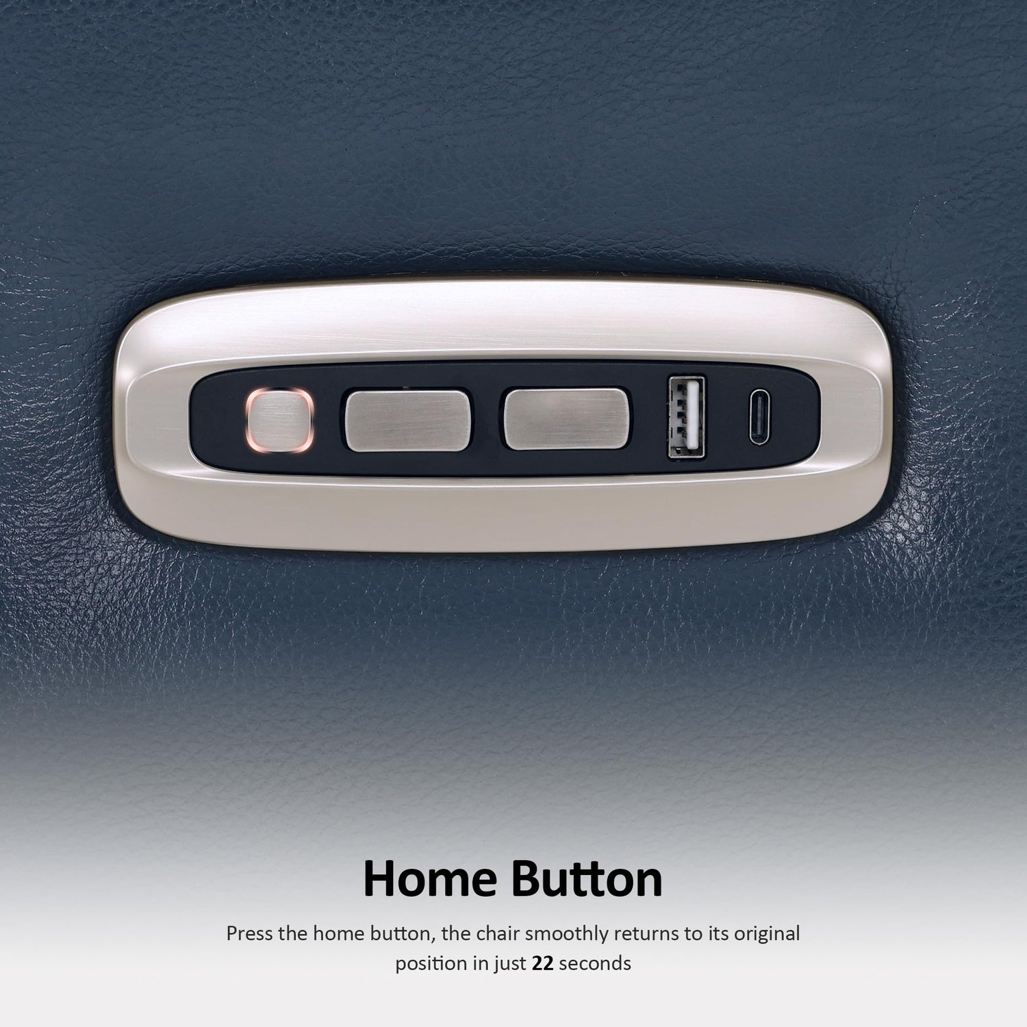 - User-Friendly Controller. Press the home button, and the chair smoothly returns to its original position in just 22 seconds. The dual USB&Type C charge ports on the armrest mean that any phone or pad is applicable