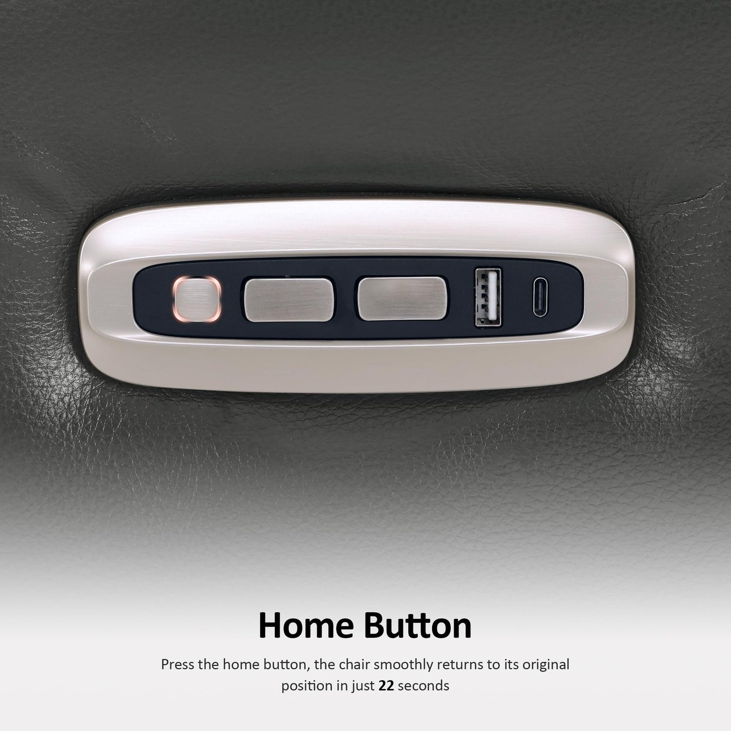- User-Friendly Controller. Press the home button, and the chair smoothly returns to its original position in just 22 seconds. The dual USB&Type C charge ports on the armrest mean that any phone or pad is applicable