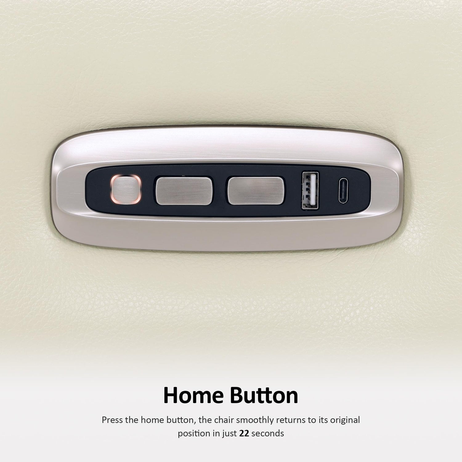 - User-Friendly Controller. Press the home button, and the chair smoothly returns to its original position in just 22 seconds. The dual USB&Type C charge ports on the armrest mean that any phone or pad is applicable