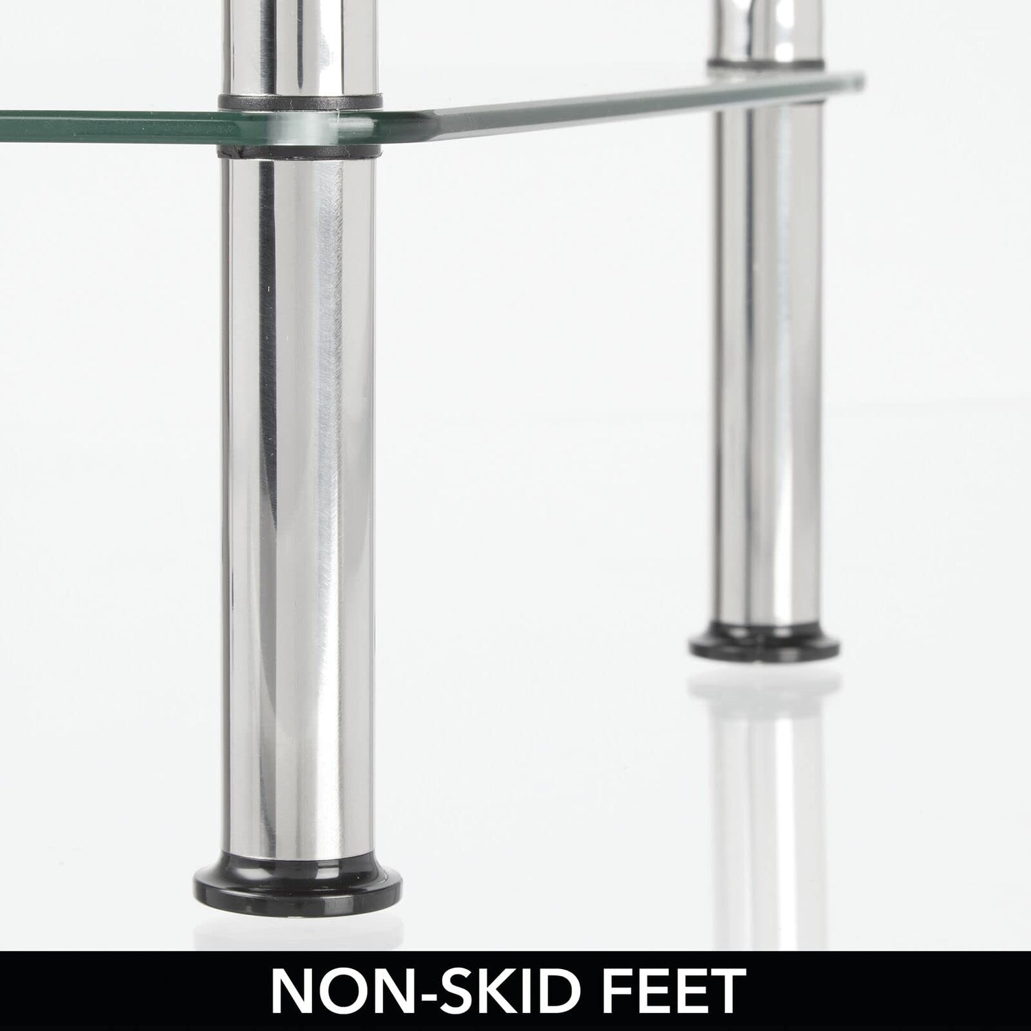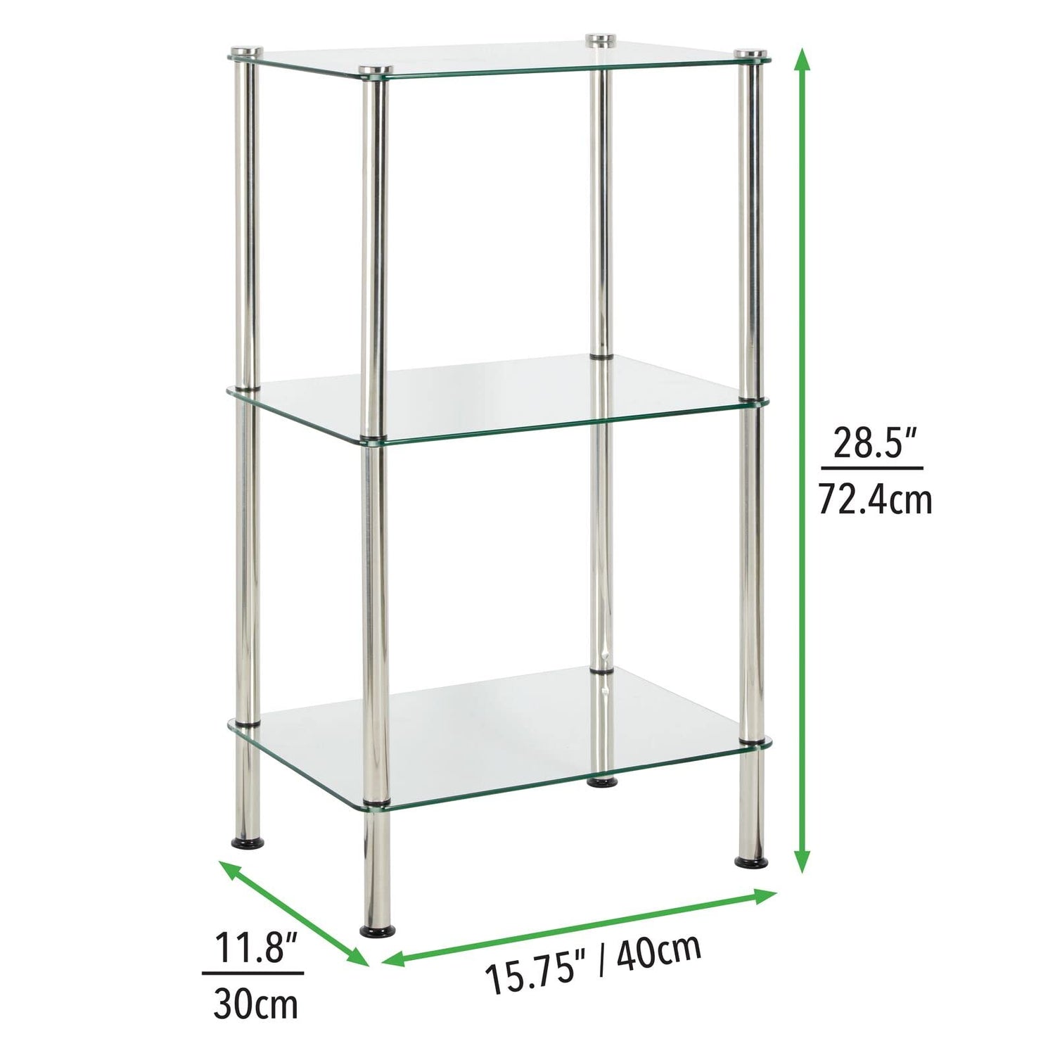 mDesign Metal/Glass 3-Tier Storage Tower, Narrow Shelving Display Unit, Open Glass Shelves; Multi-Use Stand for Living Room, Bathroom, Home Office, Hallway, Bedroom Organization - Chrome/Clear