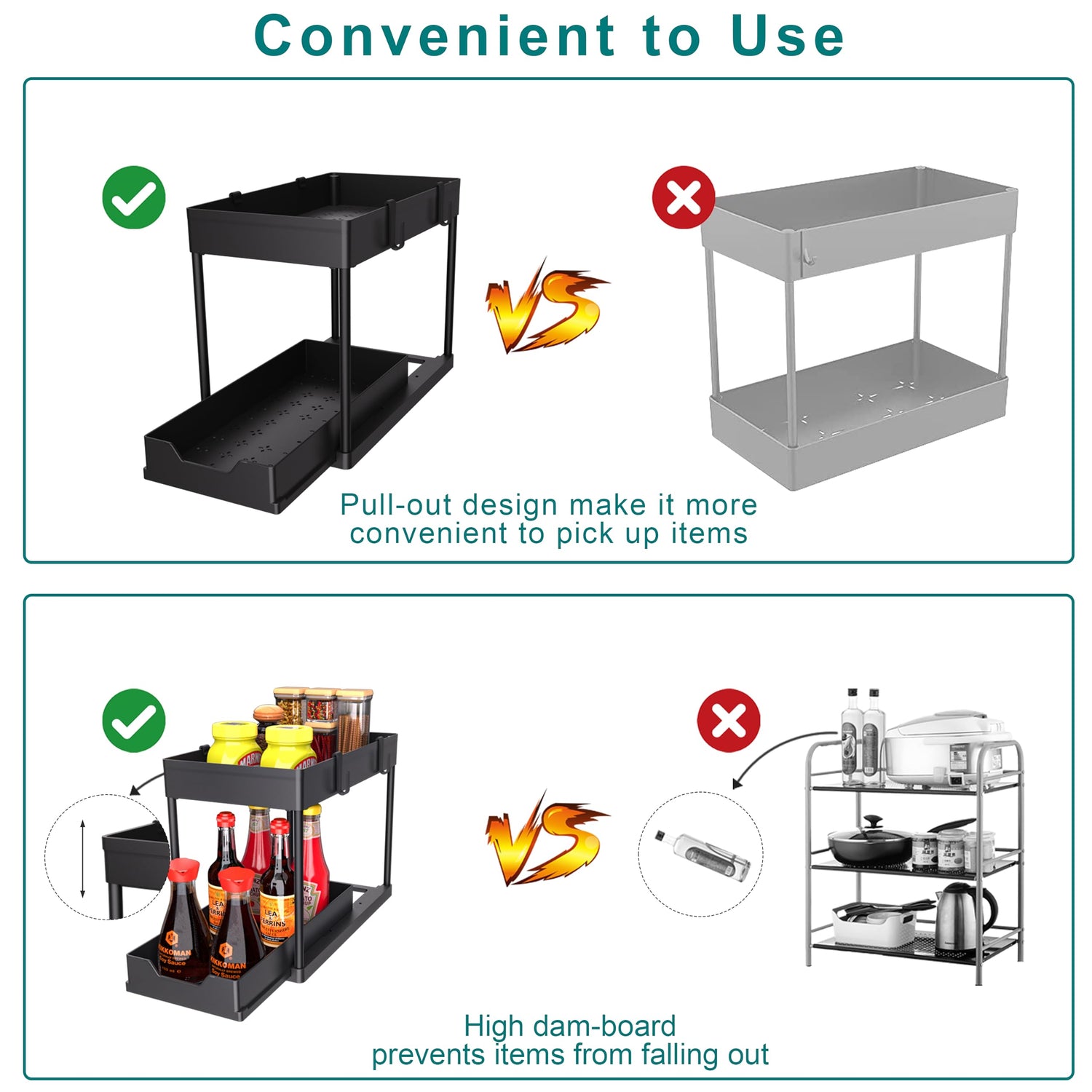 - Wide Application:Multifunctional under sink organizer can be used as bathroom toiletries storage, kitchen spice rack or office supplies rack etc. Perfect for under sink, cabinet, countertop, food pantry, kitchen, bathroom, garage, laundry room