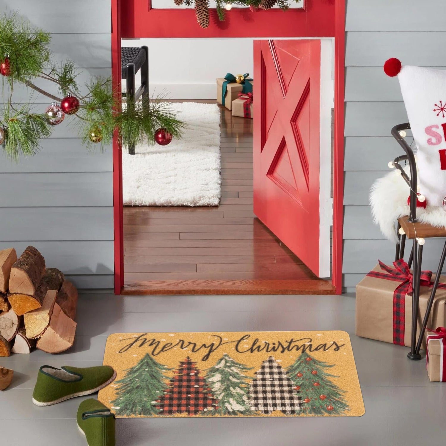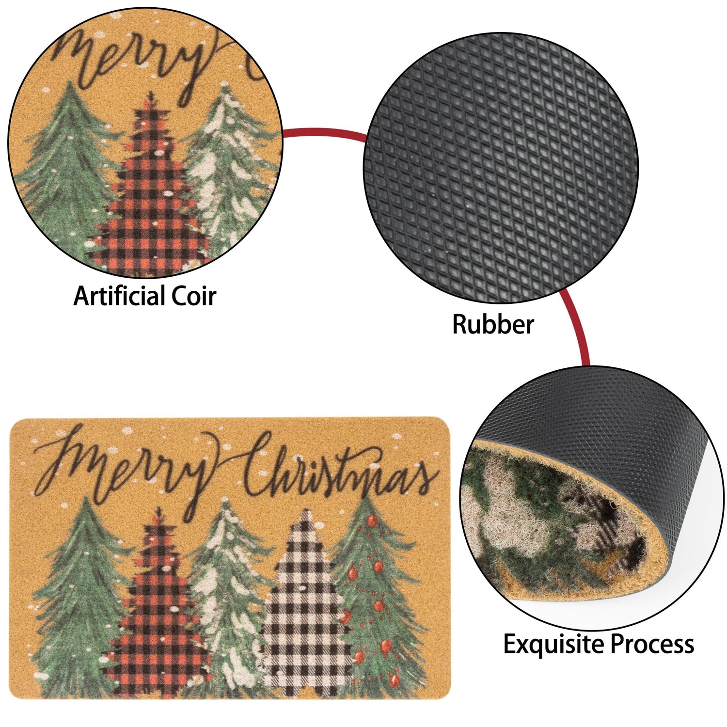 Mealah Christmas-Welcome-Doormat for Outdoor-Entrance - Non-Slip-Coir-Winter-Welcome-Door-Mat Xmas Trees Front-Door-Mat 17 x 29 Inch