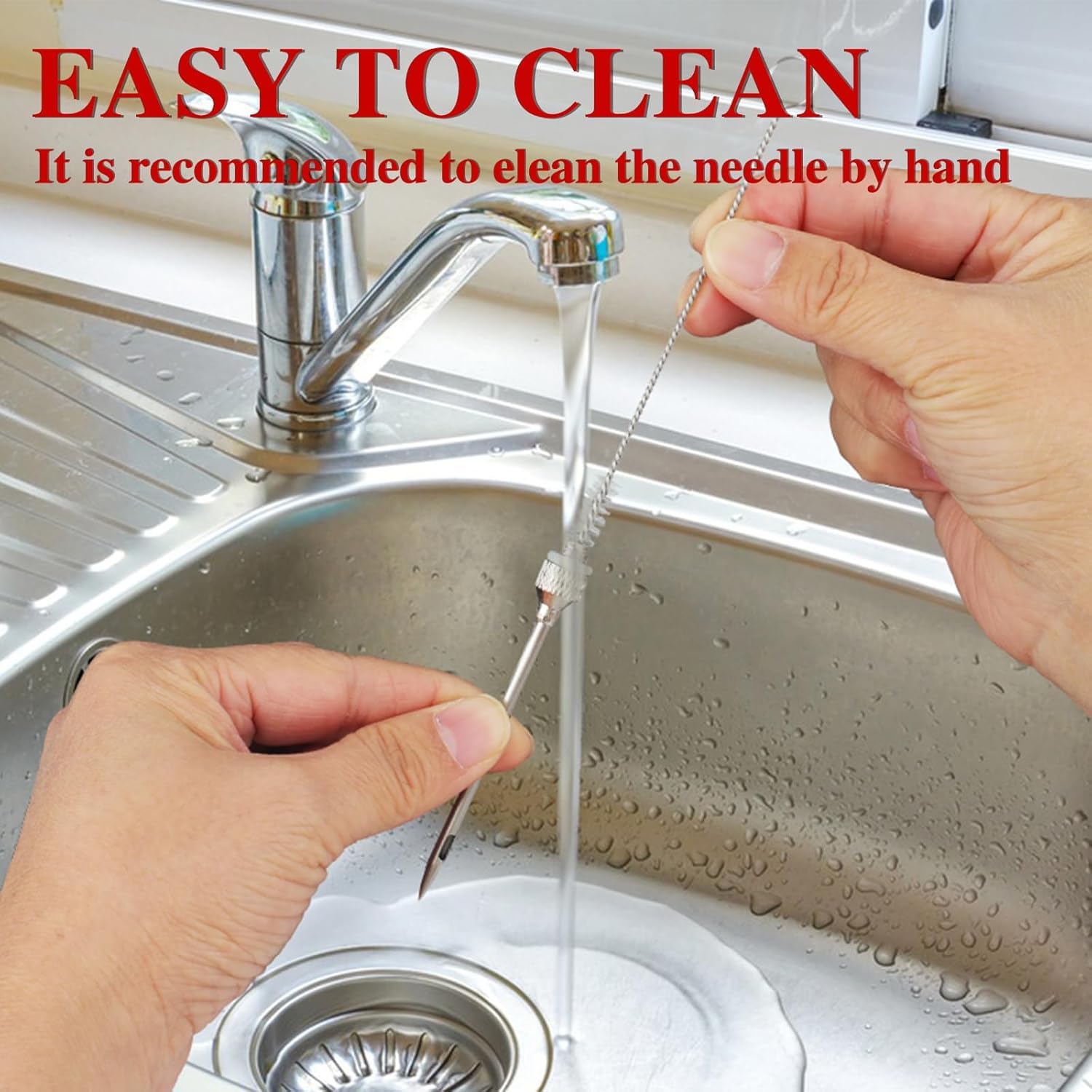 • 【What You Get】1 x Meat Injector, 1x Cleaning brush, 3x needles. Remove the tiny plastic protection tip that covers the syringe needle before use; This 1-oz plastic injector is designed for temporary uses. Friendly customer service, and A 100% Unconditional After-Sale Return Policy, in case of you don’t like it.