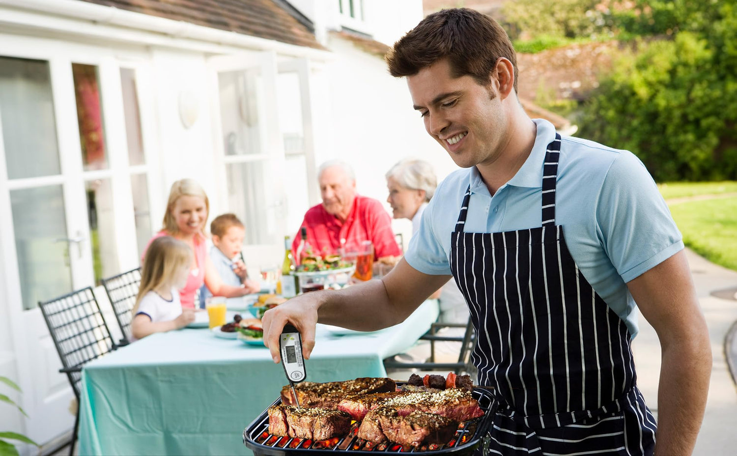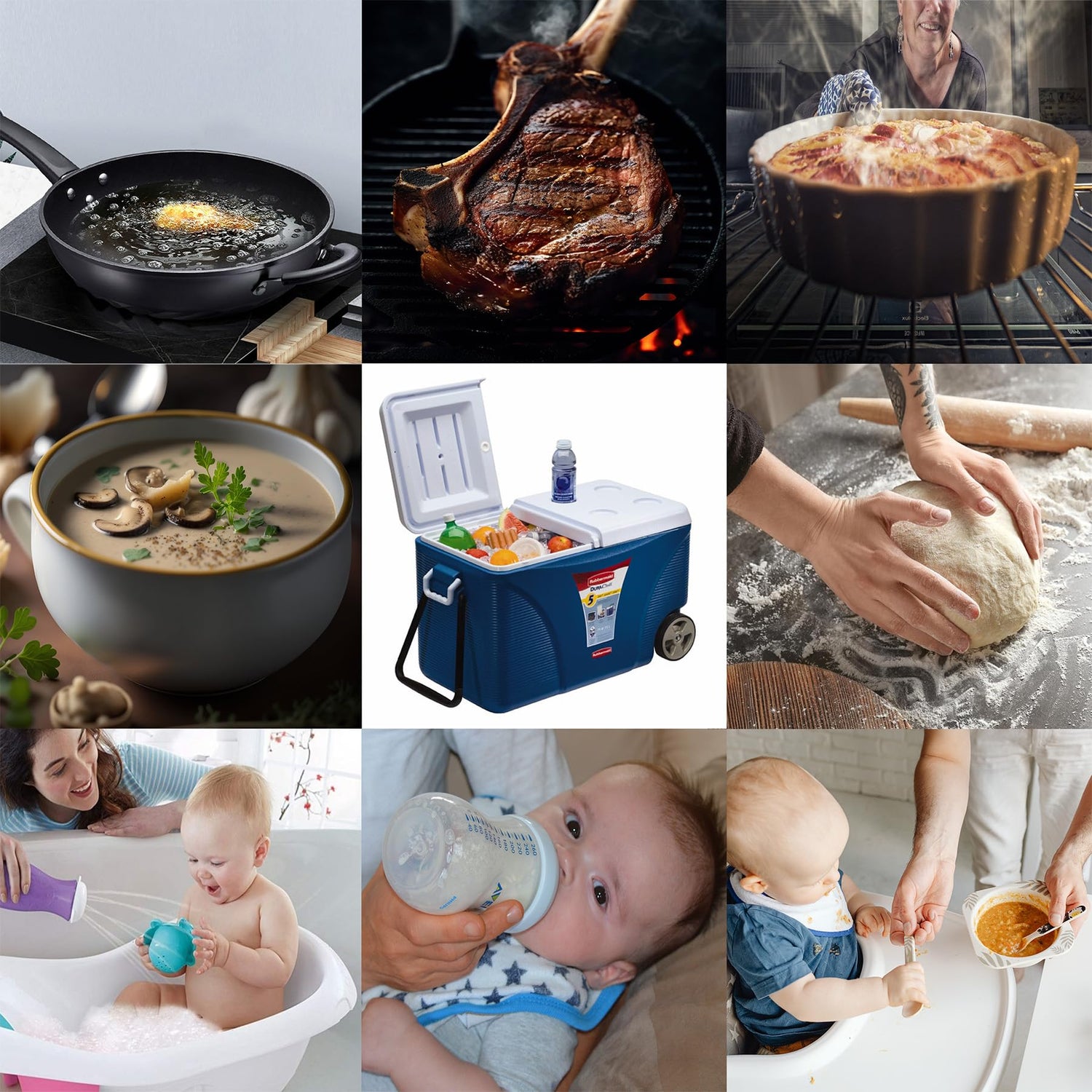 - Large digital display cooking thermometer with green backlight, easy to read in low light ; Perfect to use for grilling, baking, and cooking, whether you're frying, grilling, smoking, roasting chicken, baking turkey or having an outdoor BBQ party. It's also ideal for measuring water temperature for gardening, Compact design that makes it easy to store and carry around
