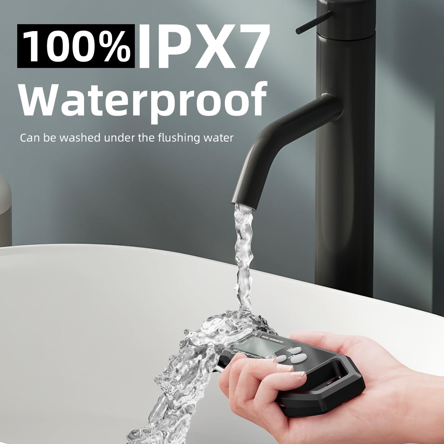 - IPX7 Waterproof & Durability: Meat thermometer is safe to clean in tap water. Probe is made of 304 stainless steel and is non-toxic and safe for food contact. The back is magnetic and can be placed on any metal surface or use a hang-hole hook.