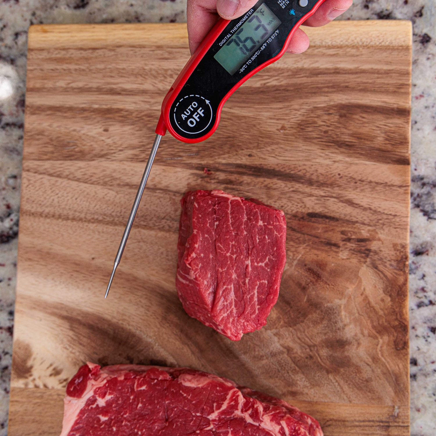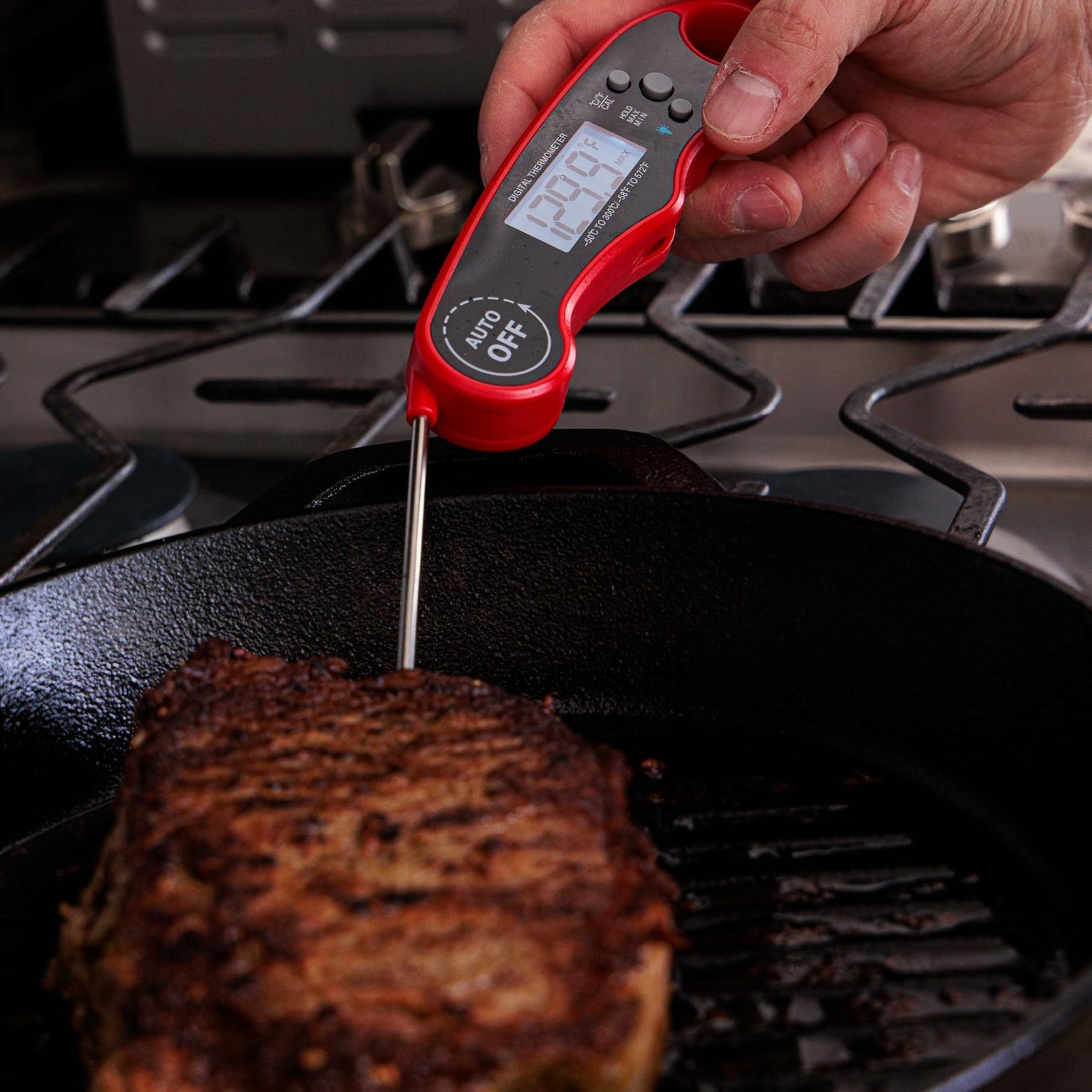 - ✅EASY-TO-USE: With MeatMeter, its easy to check the temperature of your ingredients without any issues. Just unfold it and read the current and precise temperature.
