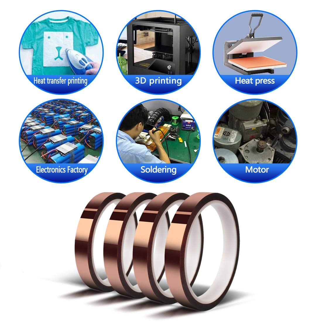 MEBMIK 4 Rolls 10mm x33m(108ft) Heat Tape for Sublimation,Heat Transfer Tape,Heat Resistant Tape,Adhesive Transfer Tape,Thermal Tape,No Residue