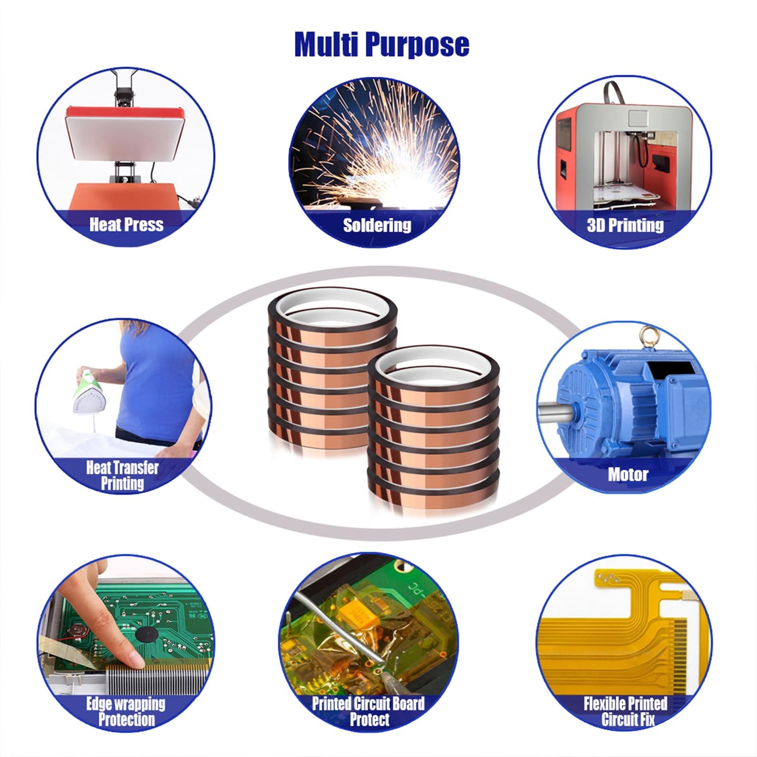 MEBMIK Heat Tape for Sublimation Transfer, Heat Resistant, Adhesive Transfer Tape, Thermal, No Residue, 12 Rolls 10mm x33m(108ft)