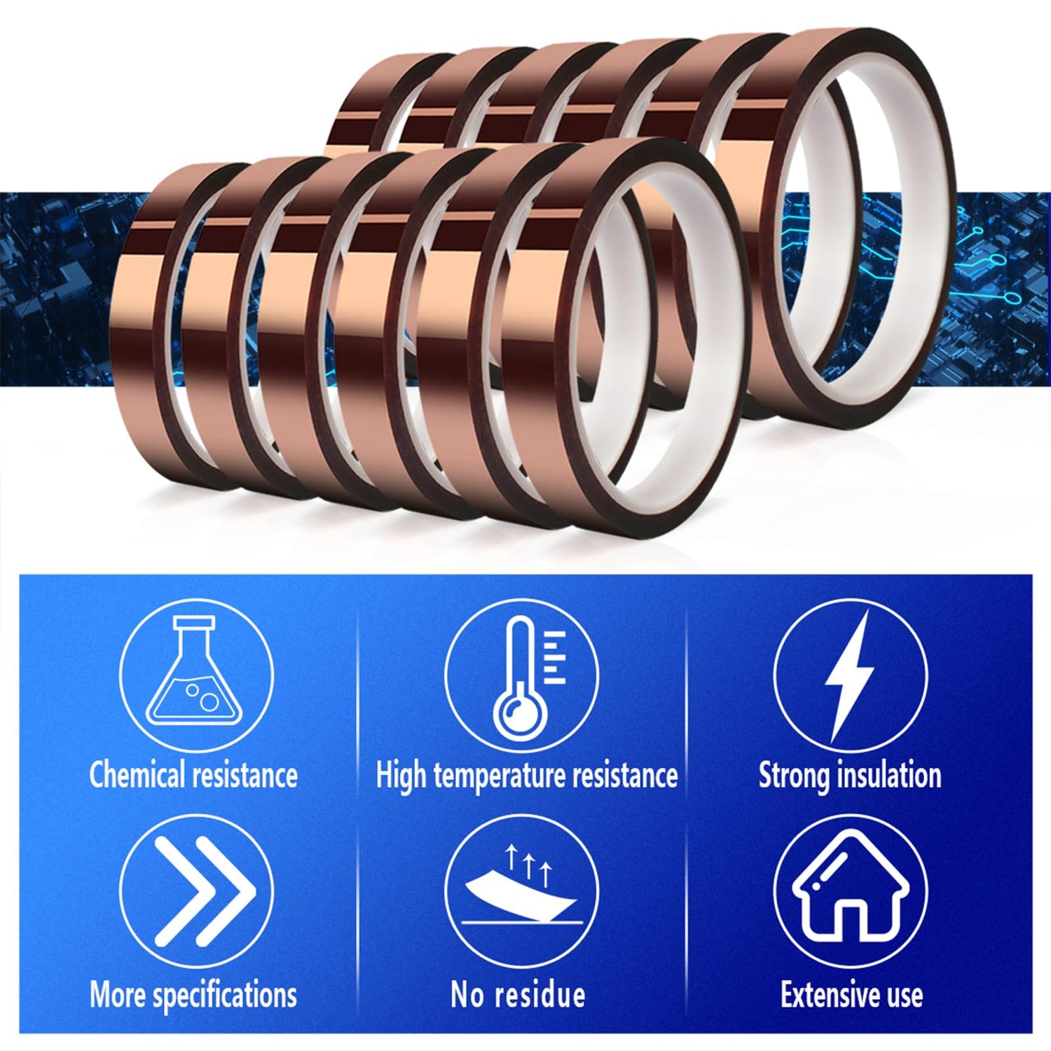 - Features: Width: 10mm/0.39inch; Length: 33m /108ft. Heat resistance: 250°C.Color: mainly tawny.