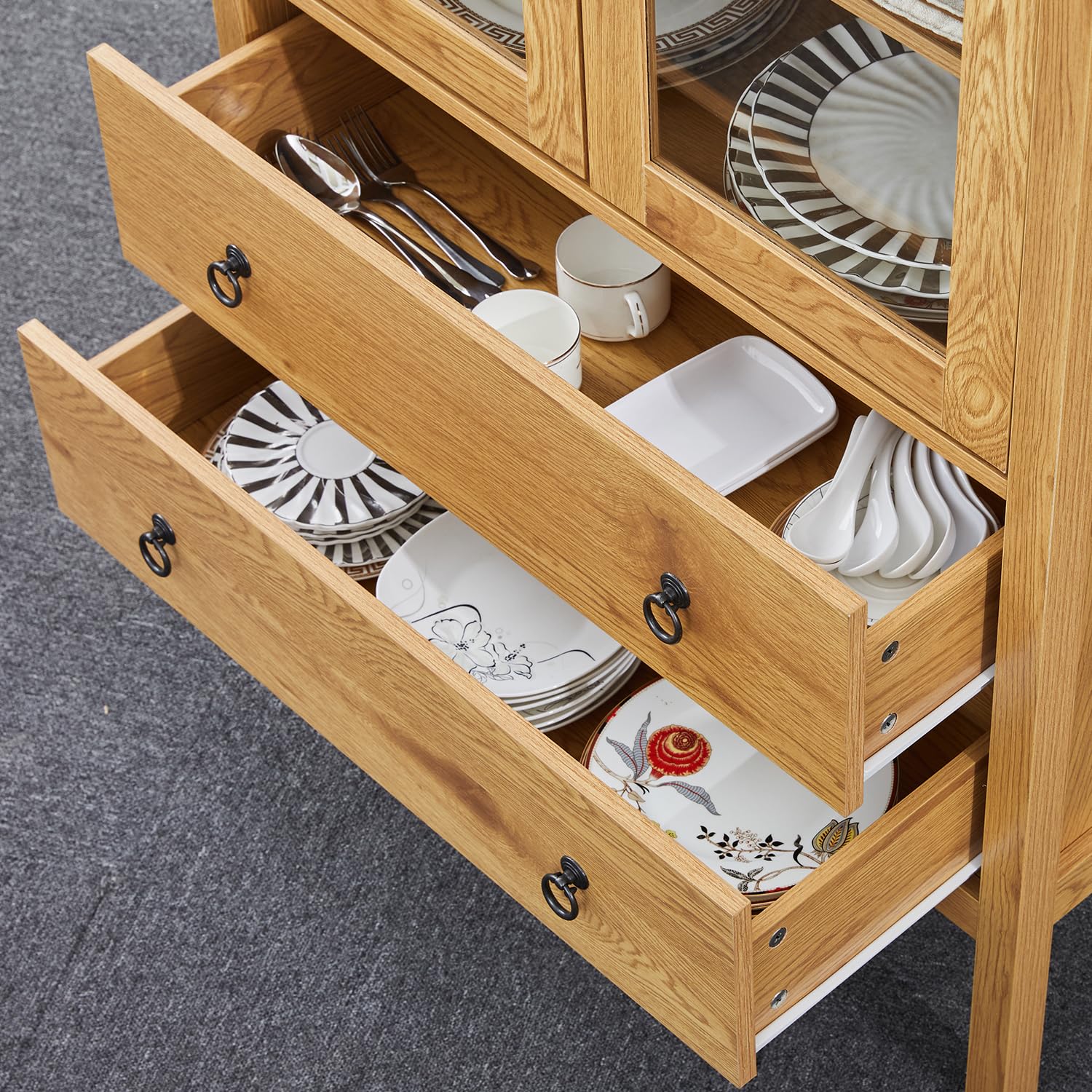 - STYLISH ARCHED DESIGN CABINET: The tall arched cabinet combines aesthetics with practicality. Its elegant arched design brings a modern and elegant atmosphere to the kitchen or living room. The open shelves are both beautiful and convenient, while the glass doors showcase Chinese tableware, adding a touch of sophistication and style. It is an ideal choice for home furnishing