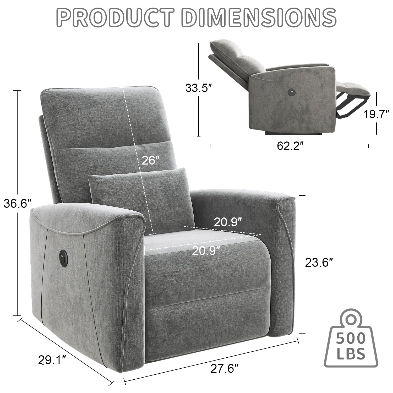 - QUALITY MATERIALS AND COMFORTABLE CUSHIONS: The Power recliner chair is made of chenille fabric and high-elastic filling material, which is soft in texture and smooth to the touch. Sitting on it can bring an excellent seating experience, even if you sit for a long time, you will not feel tired. It is perfect for reading, watching TV, and sleeping. In addition, the power reclining sofa chair is equipped with a lumbar pillow that can provide additional support for your lower back, making you more comfortable and relaxed during your leisure time.