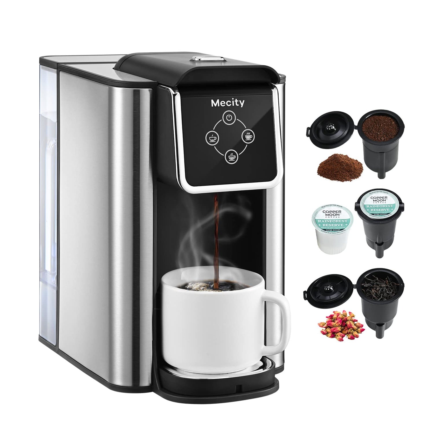Mecity Coffee Maker 3 in 1 Single Serve Coffee Machine, Compatible with K cup Capsules, Instant Coffee Pot, Tea maker, 6,8,10 Oz Cup, Removable 50 Oz Water Reservoir, 120V 1150W