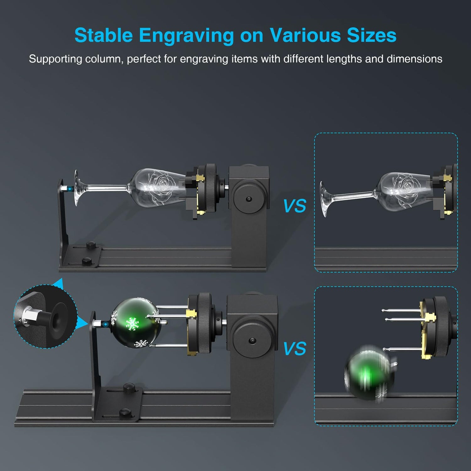 - Adjustable Angle: The Mecpow Rotary Drum Module has a 90° adjustable angle for engraving unique objects such as beverage cans, baseballs, goblets and more. It is designed with angle lines for easy viewing and precise calibration. 360° rotating chunks improve engraving stability and accuracy. You can create unique engraving creations.