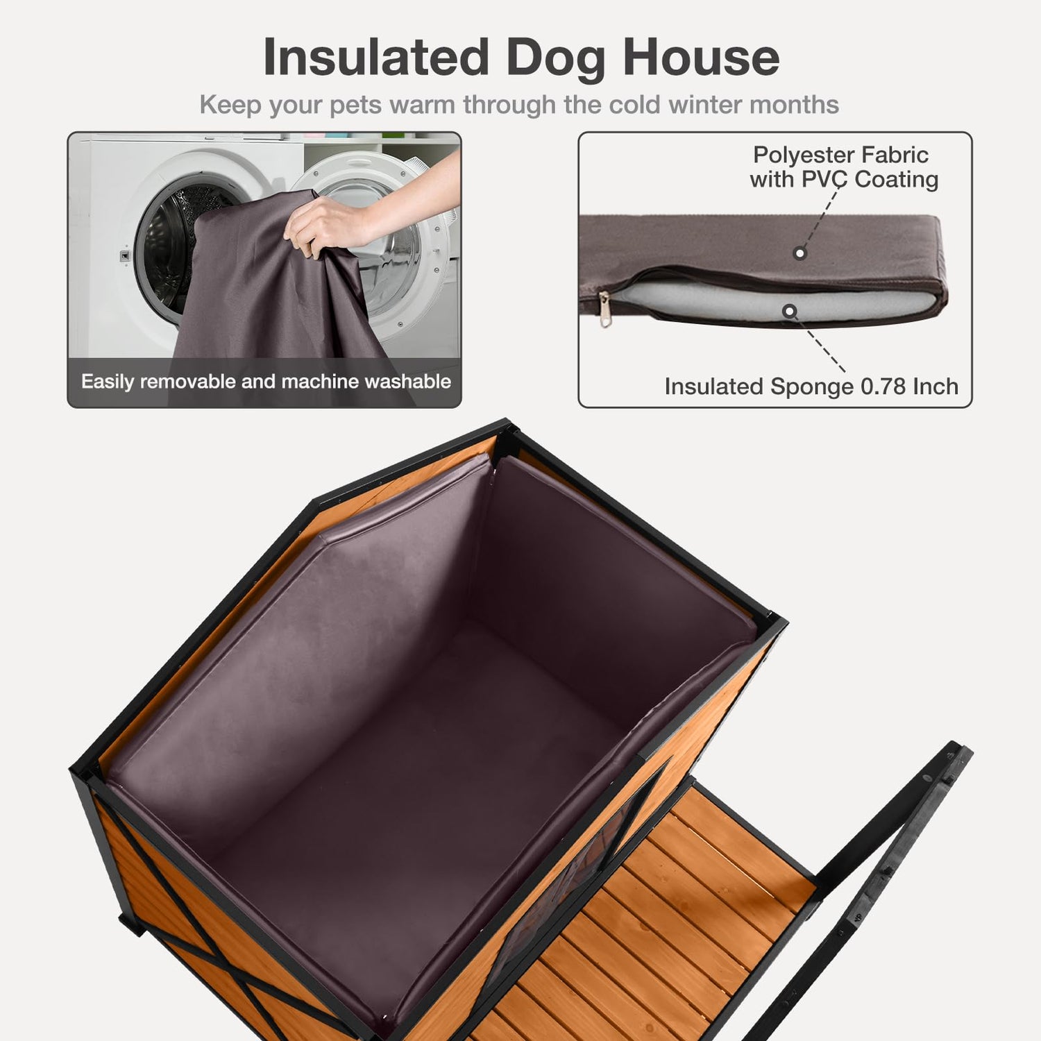MEDEHOO Outdoor Weatherproof Dog House with Insulated - Large All-Around Iron Frame - Fir Wood Construction - Ideal for All Dog Breeds (Medium)