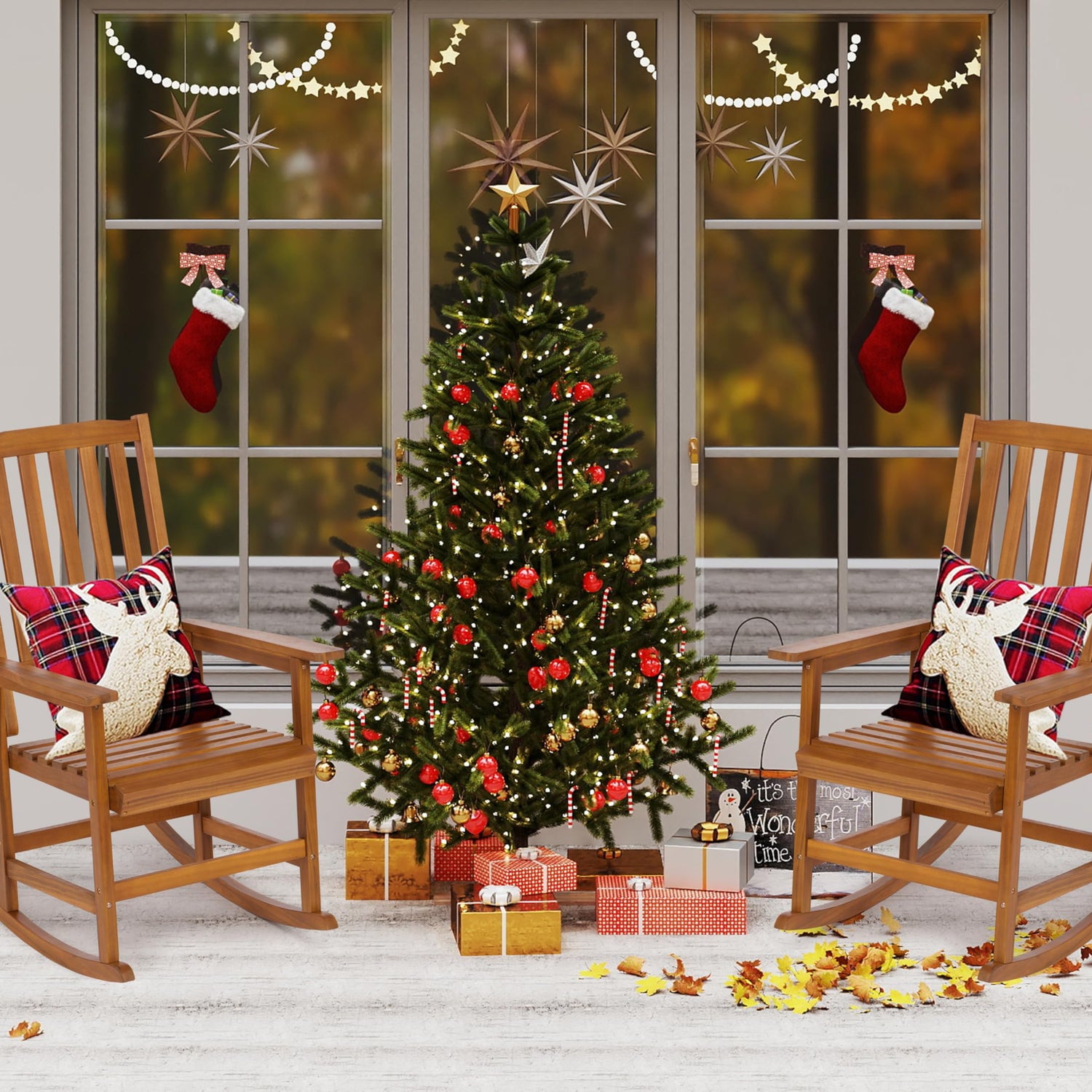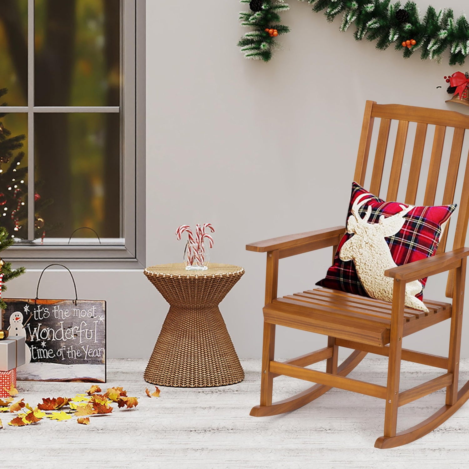 - Premium Acacia Wood: porch rocking chair made of premium acacia wood, sturdy and not easy to deform; Painted with varnish/oil finished on the surface, weather Resistant, water resistance, corrosion resistance.