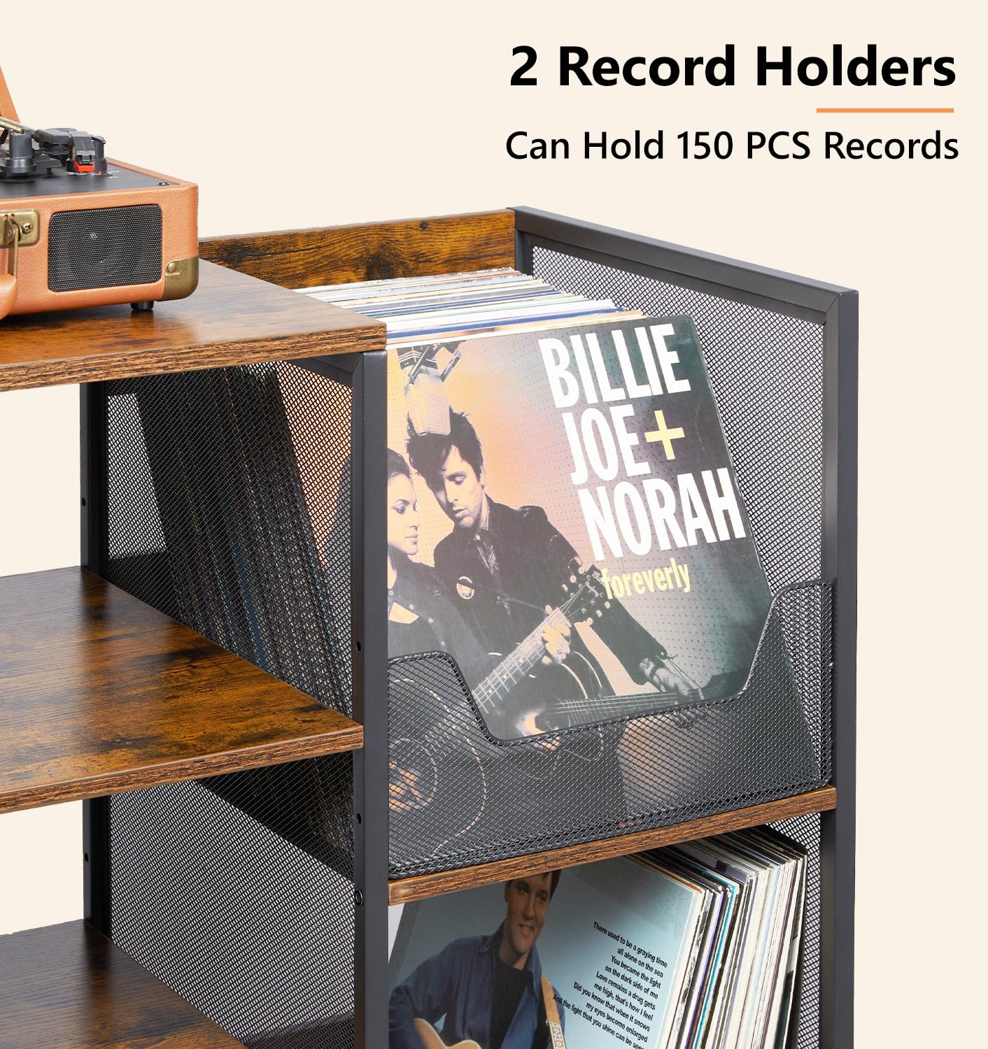 - ใ๐๐ฎ๐ฟ๐ด๐ฒ ๐ฆ๐ถ๐๐ฒ ๐ช๐ผ๐ฟ๐ธ๐๐ผ๐ฝใ: ---The left shelf of our media console cabinet has a large worktop of size 23.6โ*15.7โ which can offer your rich space to hold large media device. And the right 2 shelves can hold at least 150 vinyl records or store other audio video media accessories.