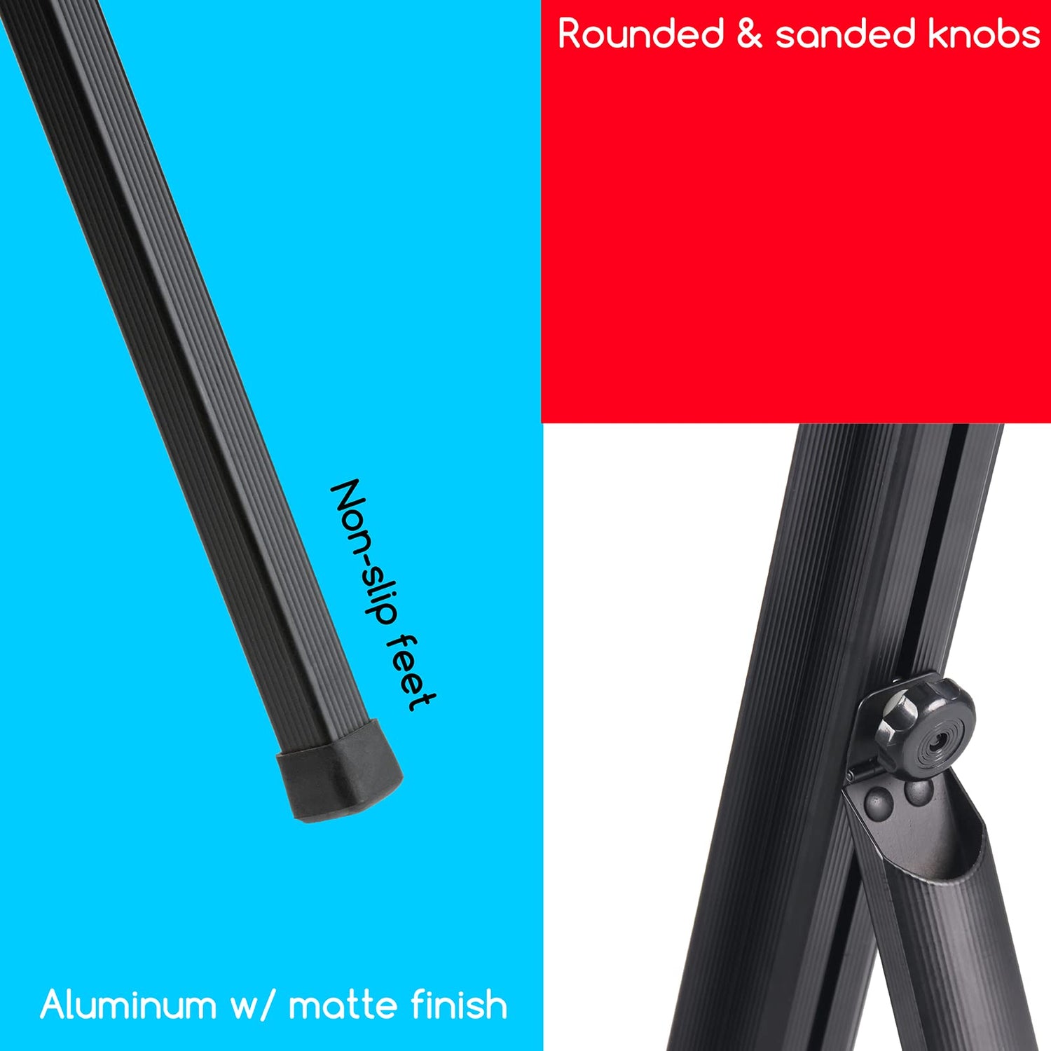 - ATTRIBUTES: Made from quality lightweight aluminum and weighing only 5 lbs, you could take the easel anywhere! When fully unfolded, measures 67"H x 34"W x 35"D overall. Aluminum material, makes this heavy-duty easel sturdy enough to hold canvases up to 34" in height and 75lbs in weight.
