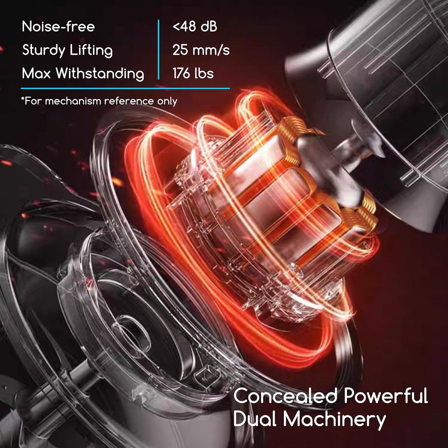- Powerful and Quiet Motor: The concealed dual machinery under the tabletop barely makes a sound while rising. The speed will remain the same as 25mm/s for years of heavy-duty use. The whole working process won't disturb a sleeping baby.