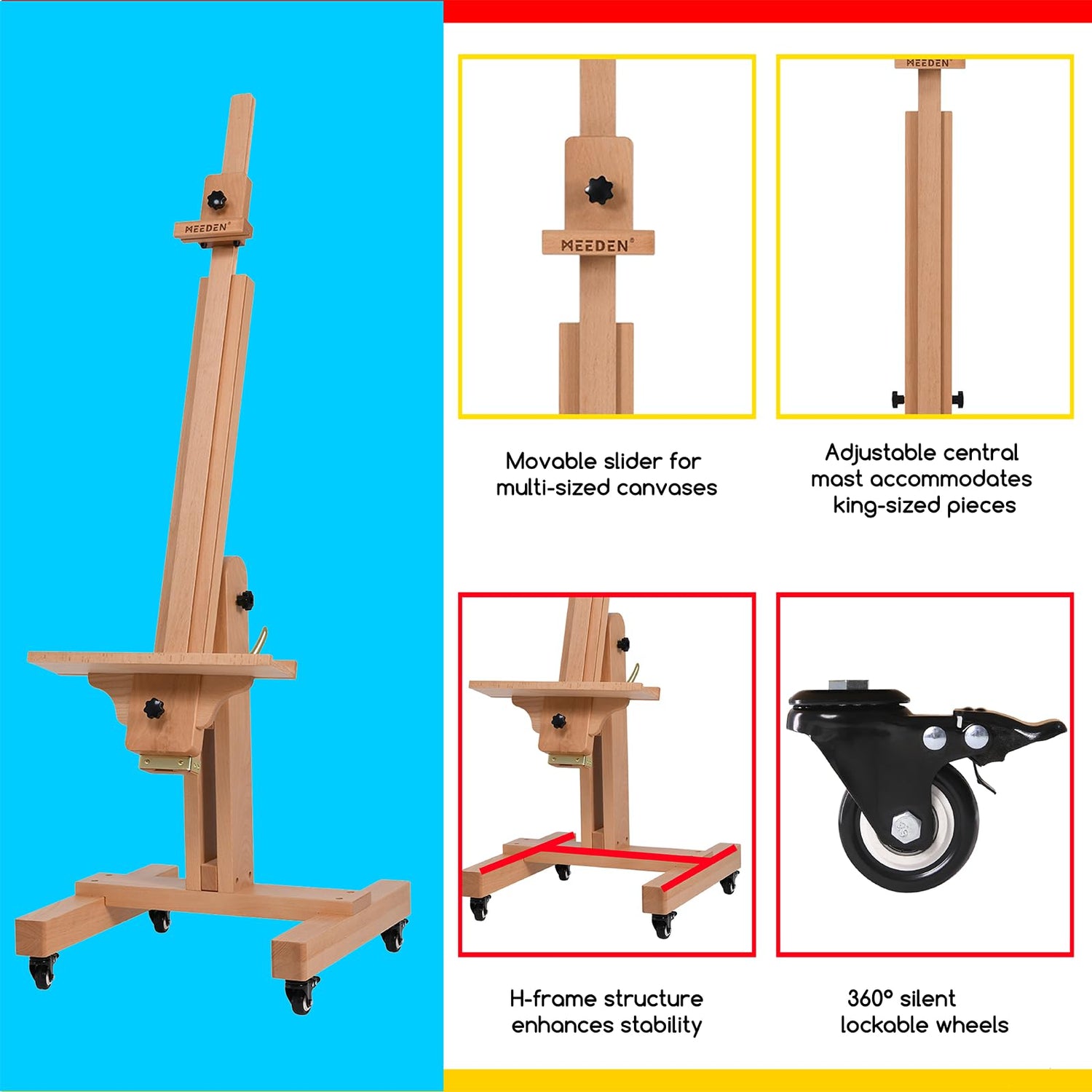 - VERSATILE USES. Great value multipurpose easel for art studios, home painting, and teaching. Whether experienced artists, students, painting enthusiasts, or beginners with a passion for art, this versatile heavy duty easel is very suitable. Ingenuity craftsmanship everything is born for art. MEEDEN pursues high-quality artworks, if there are any questions, we will provide you with efficient and satisfactory service.