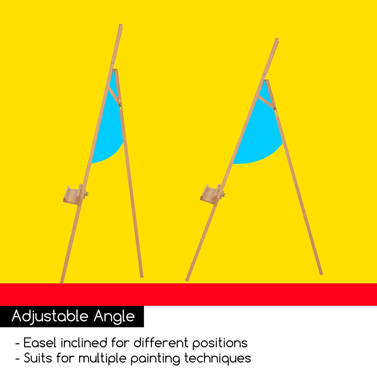 - ADJUSTABLE FUNCTIONS: Loosen the wingnuts and adjust the rear leg, and the art easel can be tilted for different angles to suit most positions you want. The large tray can be adjusted up and down to meet your different painting habbits or display needs. When not in use, the easel can be easily folded flat to fit in narrow spaces.