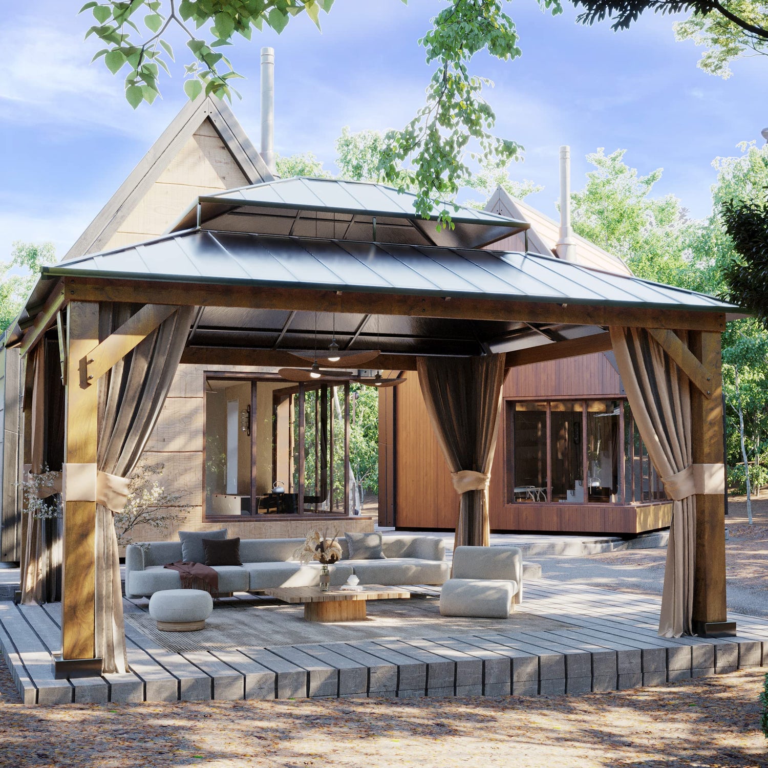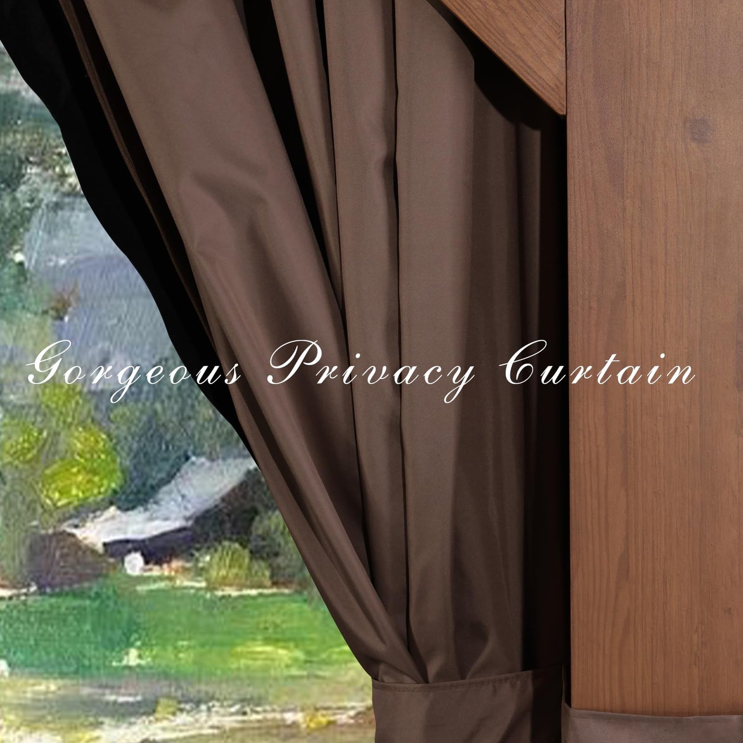 Meetleisure 13' x 15' Double Hardtop Gazebo - Outdoor Thermal Transfer Wood-Looking Aluminum Gazebo with Double Hardtop, Privacy Curtains and Mosquito Nettings Included, for Patio, Garden, Backyard