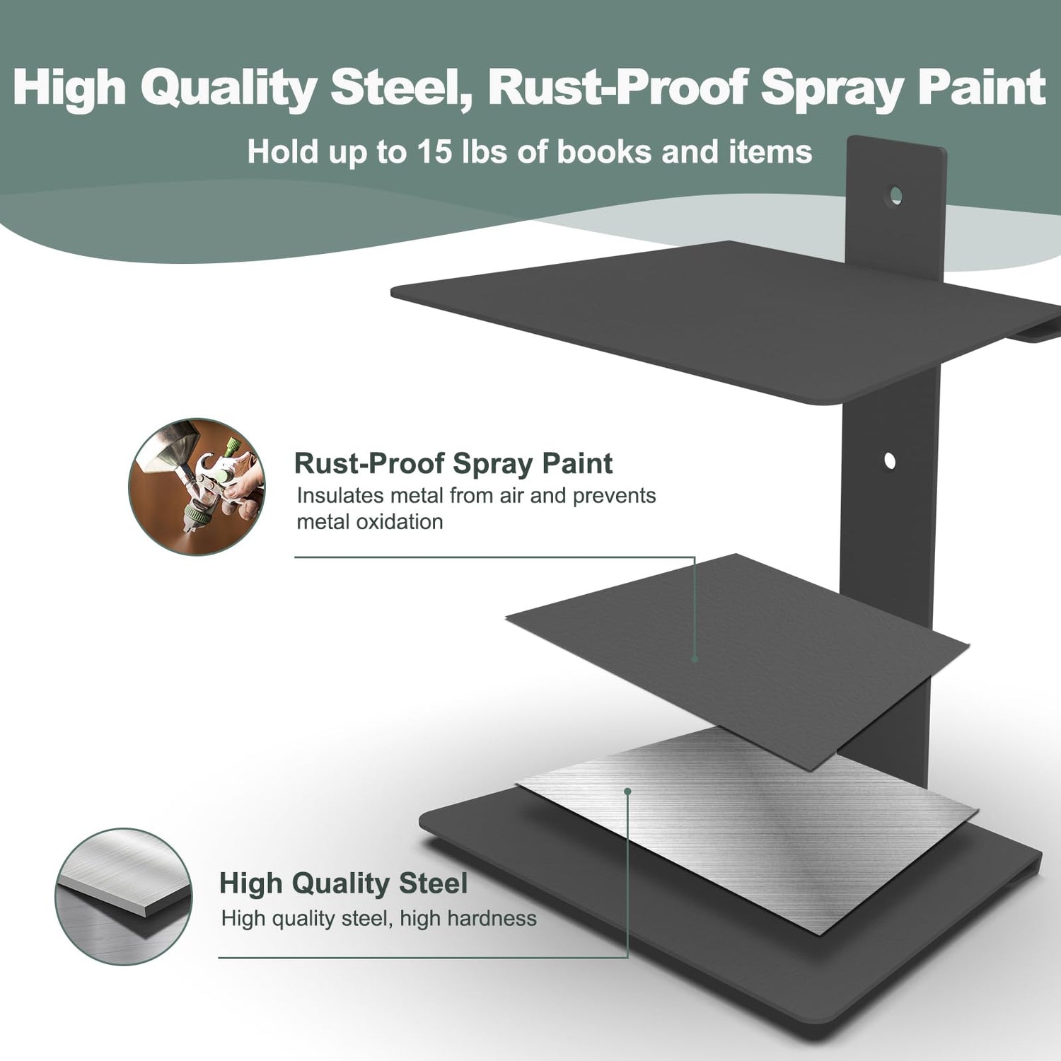 - High Load-bearing Capacity: Made of strong steel with stainless steel coating, which is strong and durable, solid in construction and not easily cracked. Each tier holds up to 15 pounds of books. The size of the invisible bookshelf is fit for most of books.
