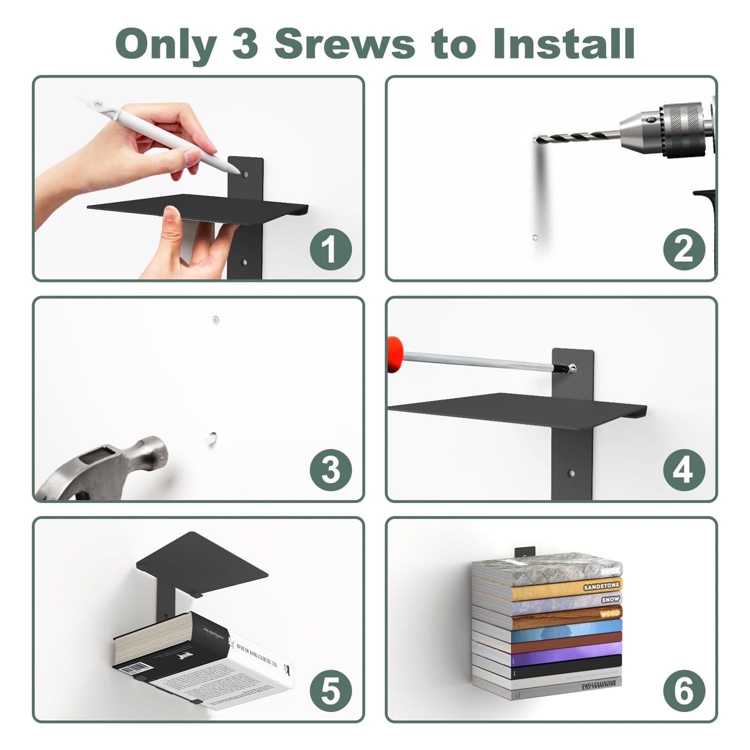 - Easy to Assemble: 4-Pack Black wall bookshelf. There are anchors and screws in the package. Just follow the instructions to install. Its placement can be as you like (when connecting each bookshelf, you are allowed to place as many of your favorite books or decorations as possible without bending).