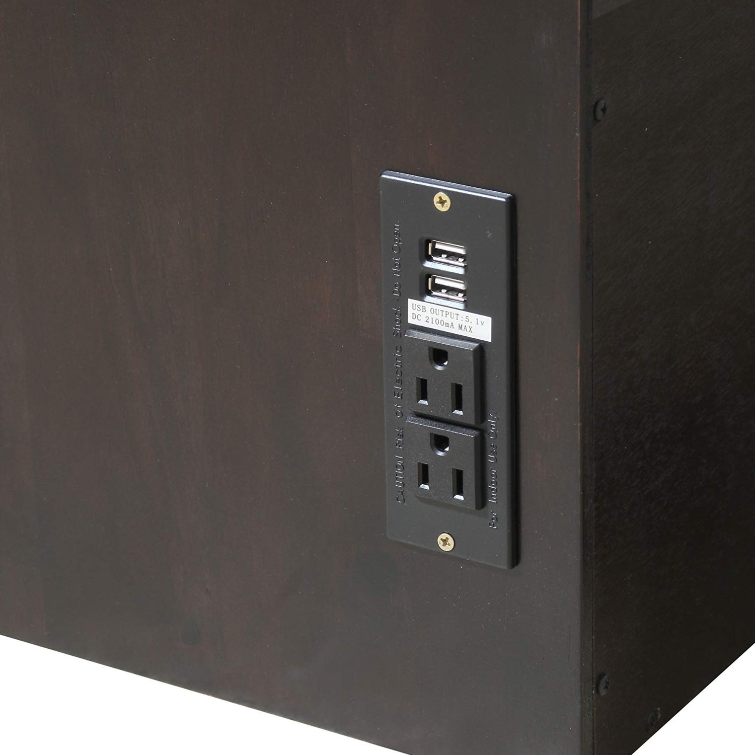 - The Daily Delight cabinet is crafted with high-quality solid wood for years of durability and beauty. The cabinet has two bottom storage drawers and a built in electrical plug making the furniture as functional as it is stunning.