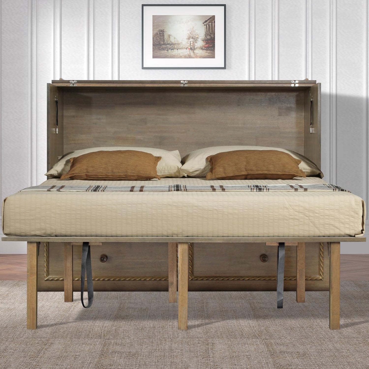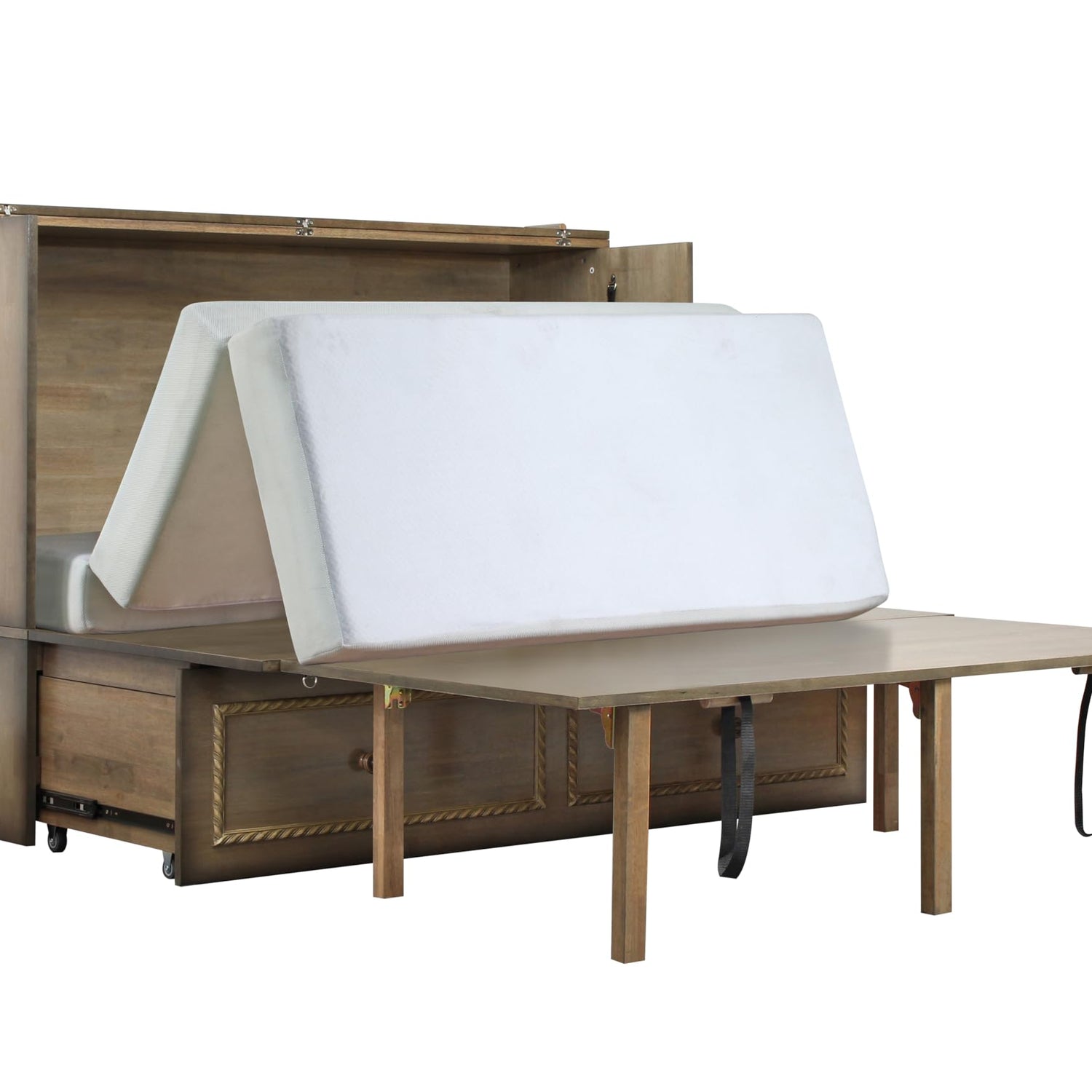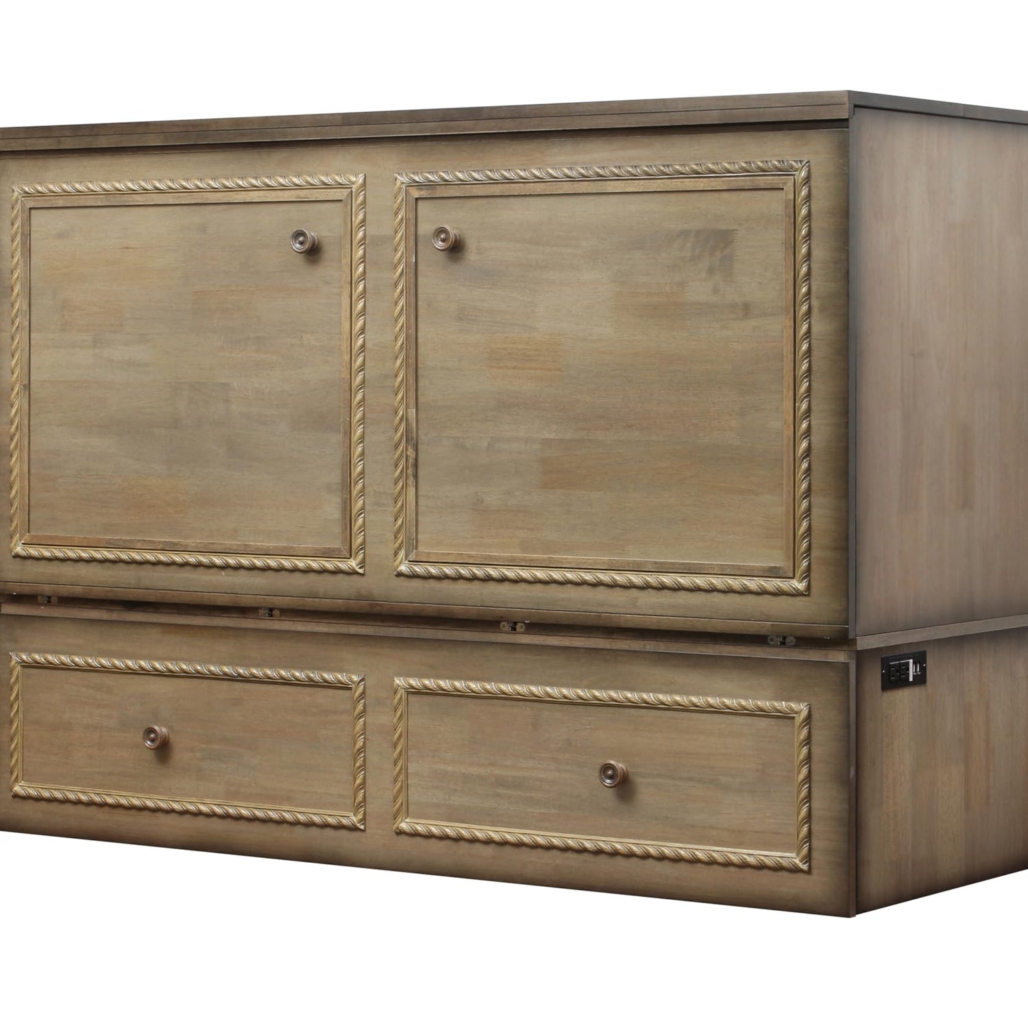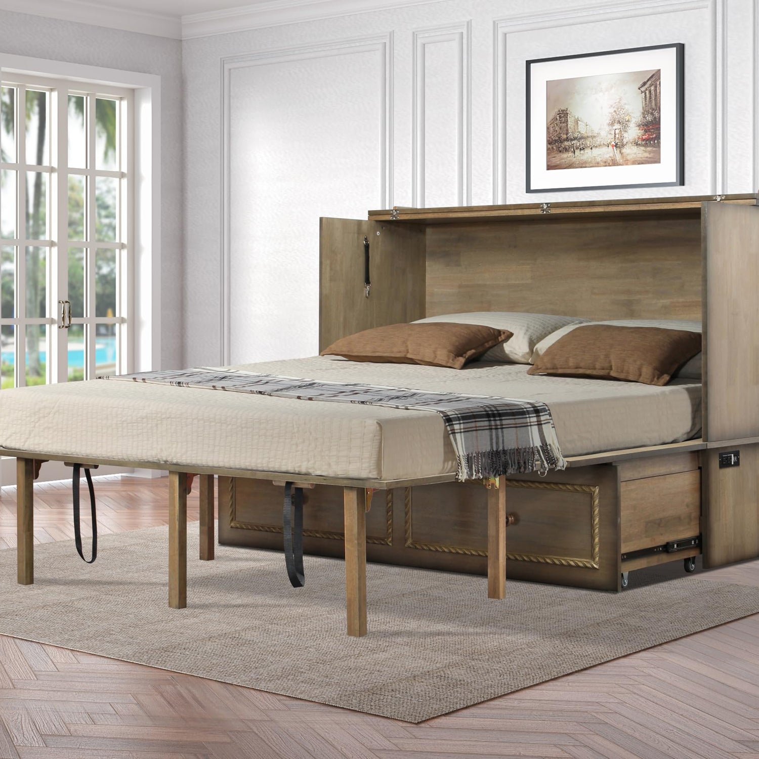 Mega Solutions Venetian Murphy Cabinet Bed with Deepest Storage Drawer On The Market and USB Charging Station (Queen, Latte)