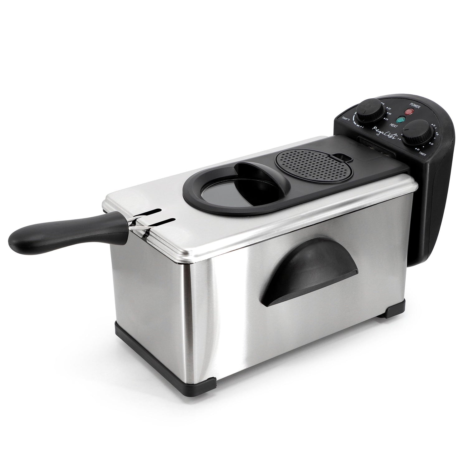 Details: Avoid the splatter and spills of hot oil with the MegaChef 3.17 Quart Stainless Steel Electric Oil Deep Fryer. Conveniently sized, this handy kitchen appliance is perfect for preparing all your favorite fried foods and treats. Temperature control and timer knobs for precise frying temperatures, providing you with flavorful and crispy foods allowing you to deep fry quickly and efficiently. Features see through window for your viewing convenience and removable Anti-Odor filter to filter out unwanted oil smell.