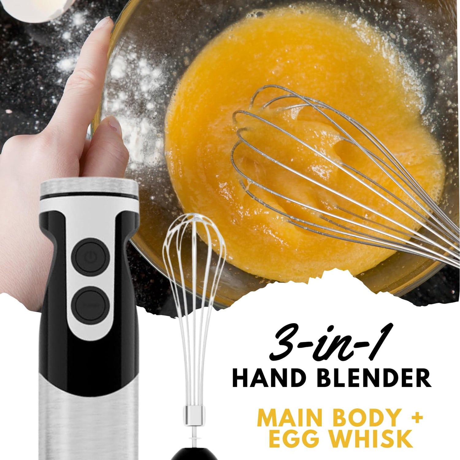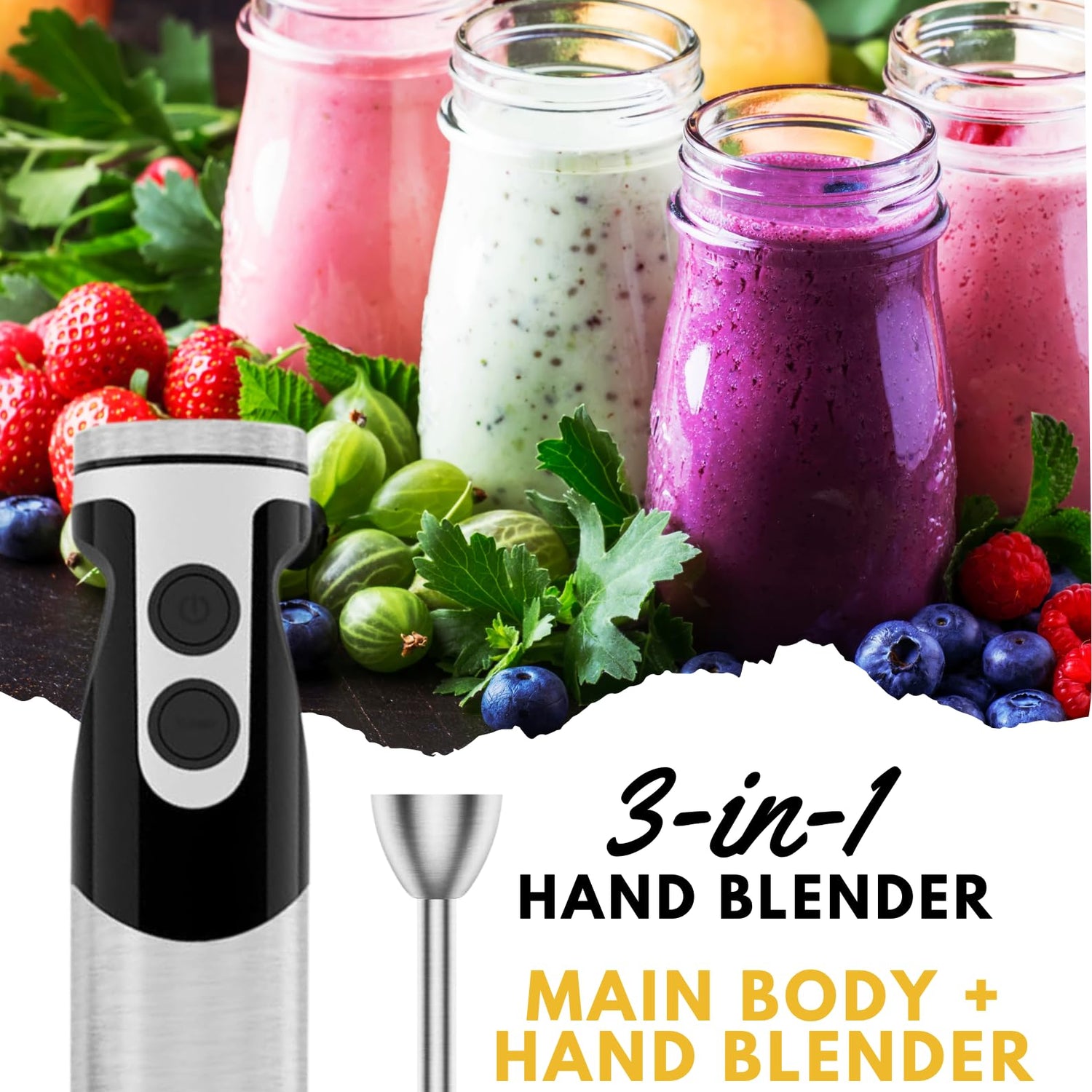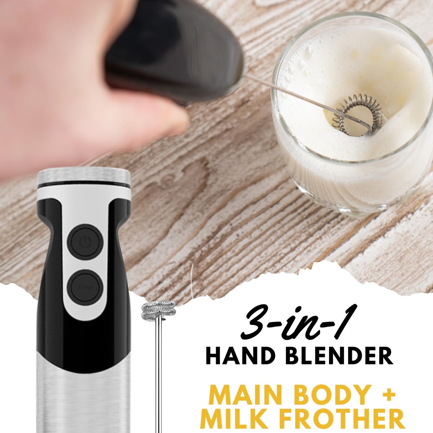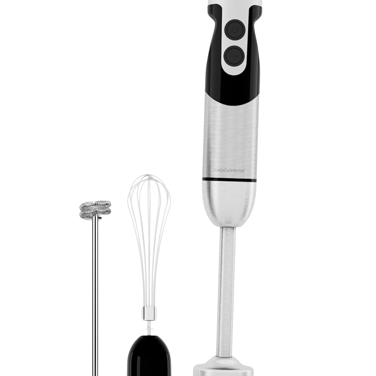 MegaWise Stainless Steel Titanium Reinforced 3-in-1 Immersion Hand Blender, Powerful with 80% Sharper Blades, 12-Speed Corded Blender, Including Whisk and Milk Frother (3-in 1 Black)
