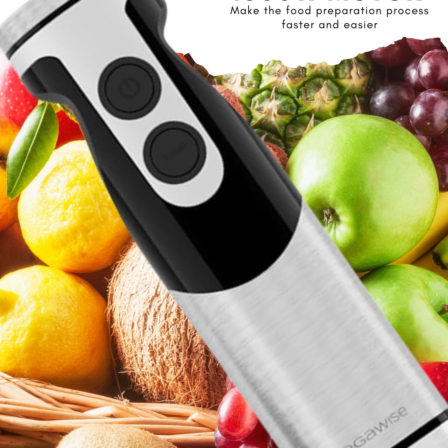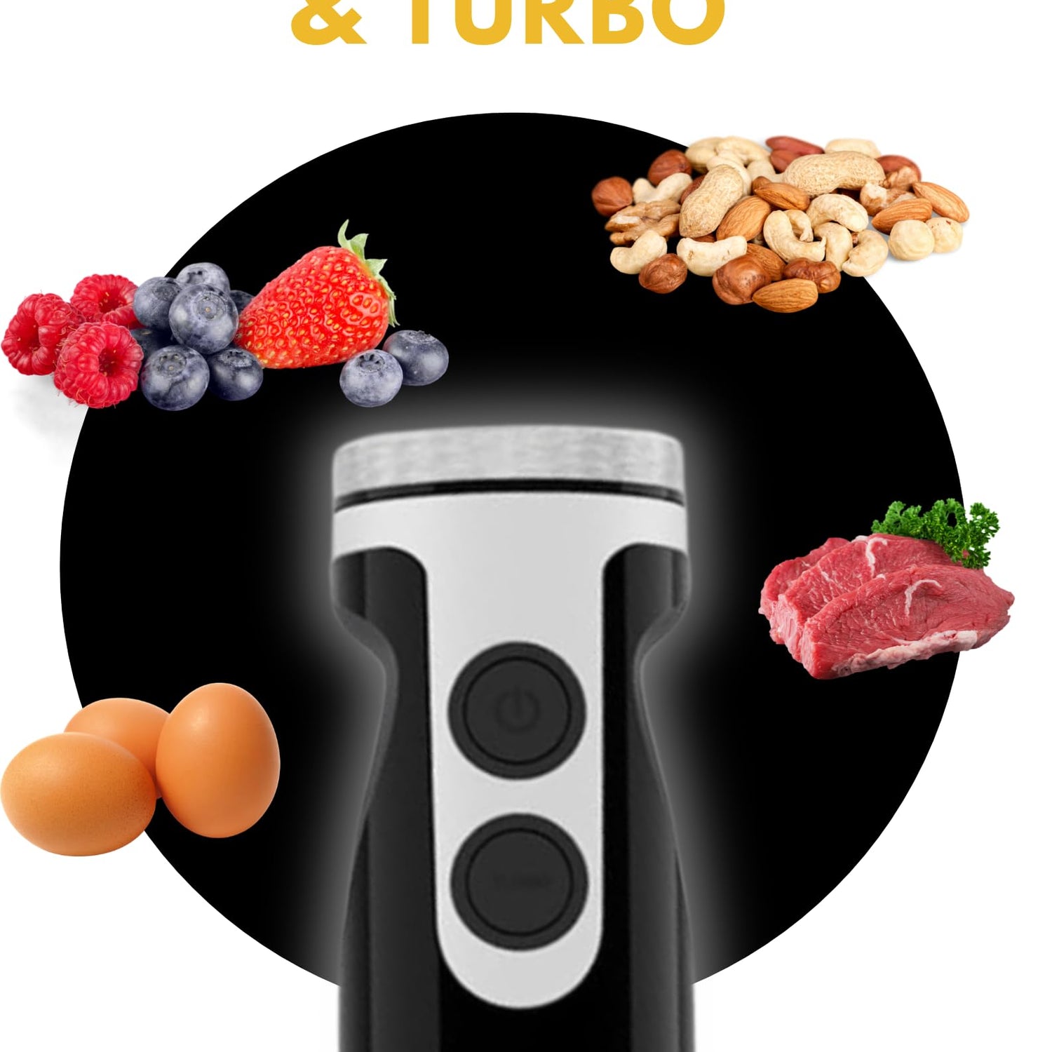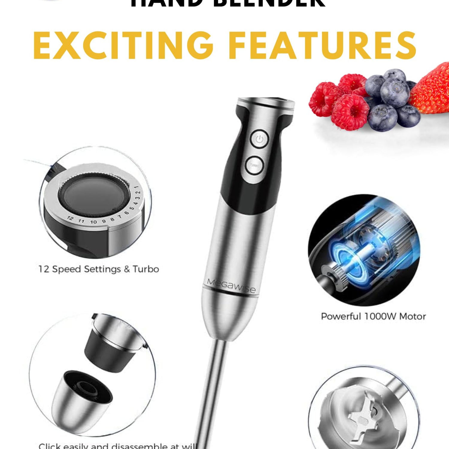 - Powerful Motor: The new generation MegaWise immersion blender comes with a motor with top power 1000W DC motor (rated 400W), which is much powerful than most of the traditional hand blender and offers 3x better blending performance. It makes the food preparation process faster and easier and gives you a unique culinary experience. Easy to chopping nuts and mashing potatoes, perfect for cutting hard ingredients up efficiently.