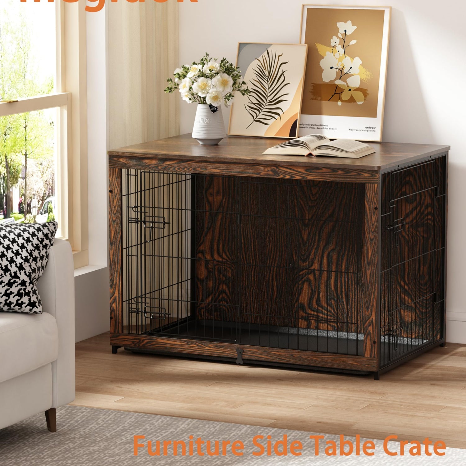 Add a piece of furniture that is functional and beautiful: it can double as a dog crate, as well as a sofa table, coffee table, bedside table, or even a TV stand. Match it with your favorite potted plants or put your favorite table lamp to decorate your home.