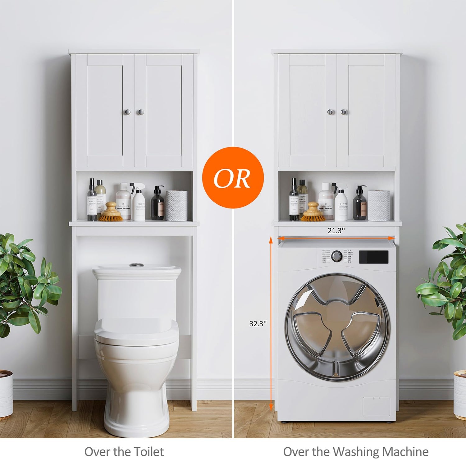 - SPACE SAVER: The overall size of the storage cabinet above toilet is 23.6"(W) x 9.1"(D) x 65.4"(H), suitable for most standard-height toilets with 32.3" height from the bottom board to the floor.3 classic colors available: white, gray and black