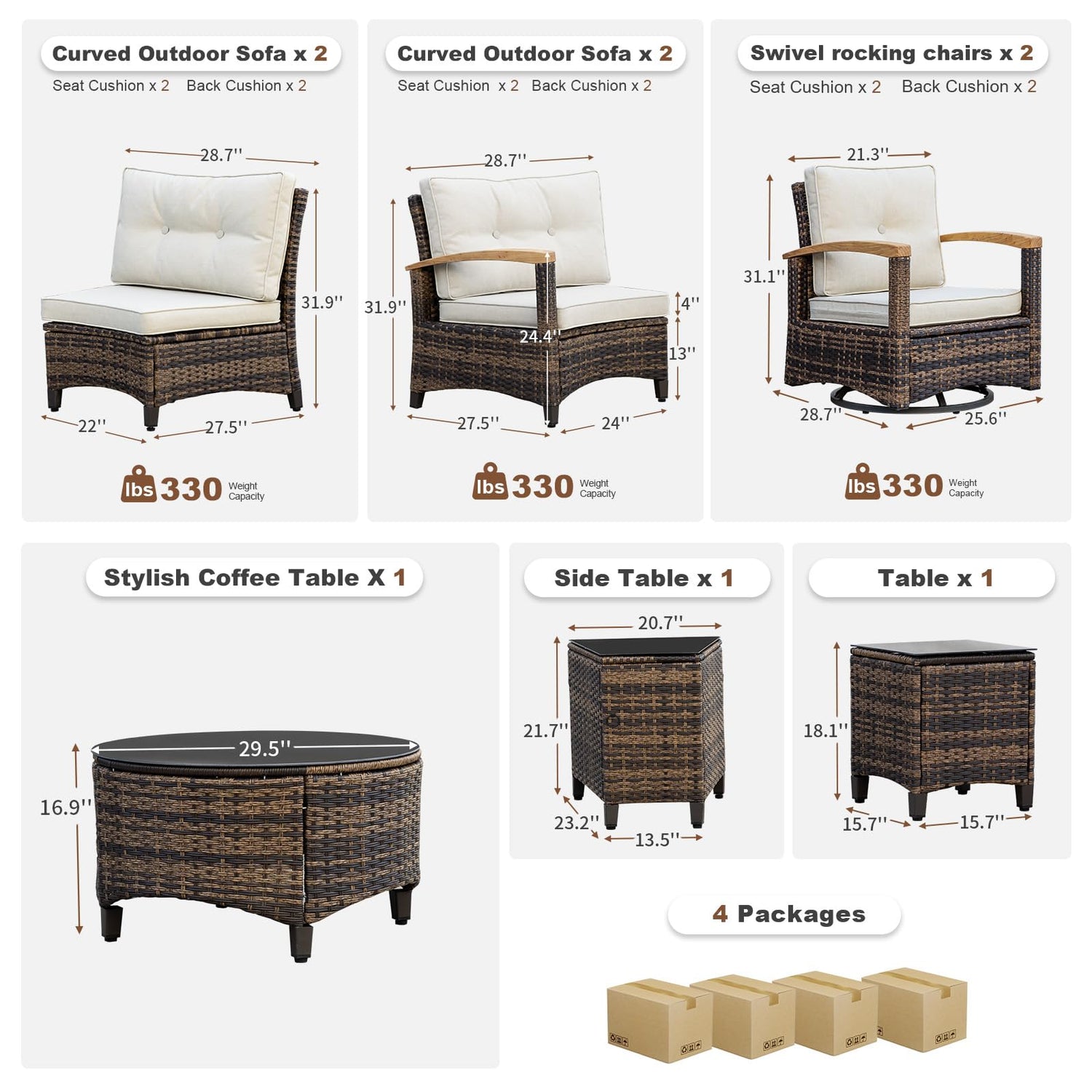 - After-Sales Guarantee: Assembly is required for the outdoor wicker furniture , which comes in 4 boxes.If there are any damages, missing parts, or other product quality or assembly issues, please contact us.Our team will respond within 24 hours and provide robust solutions.